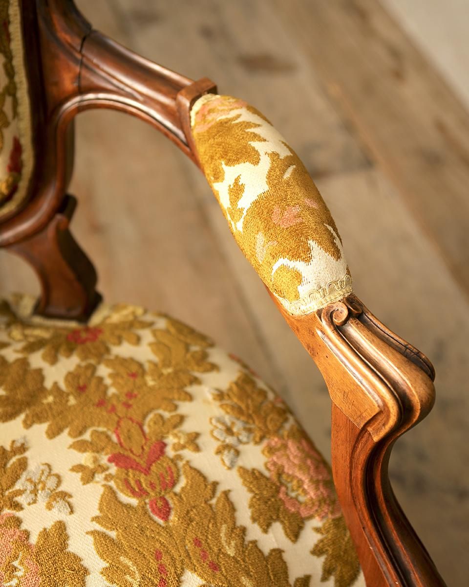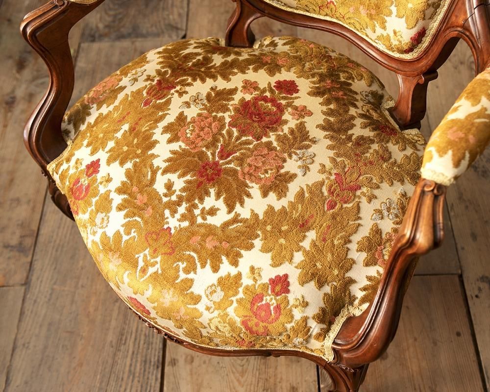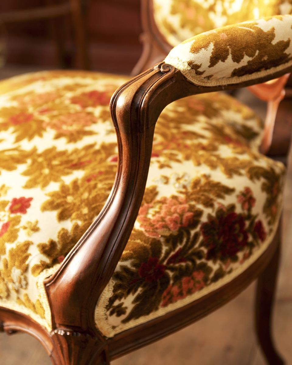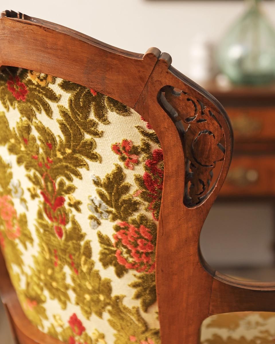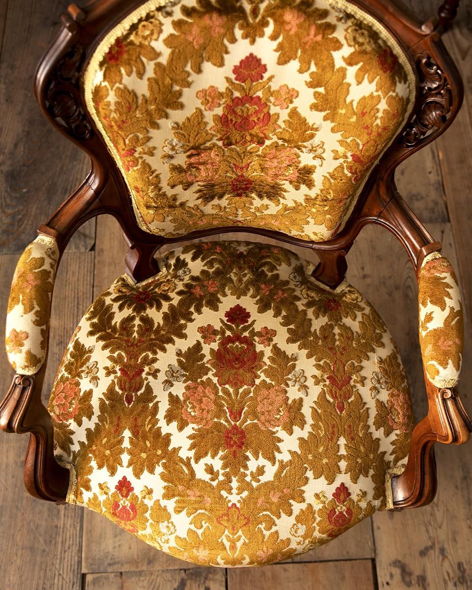 ダマスク柄のようなフラワーモチーフのファブリックに