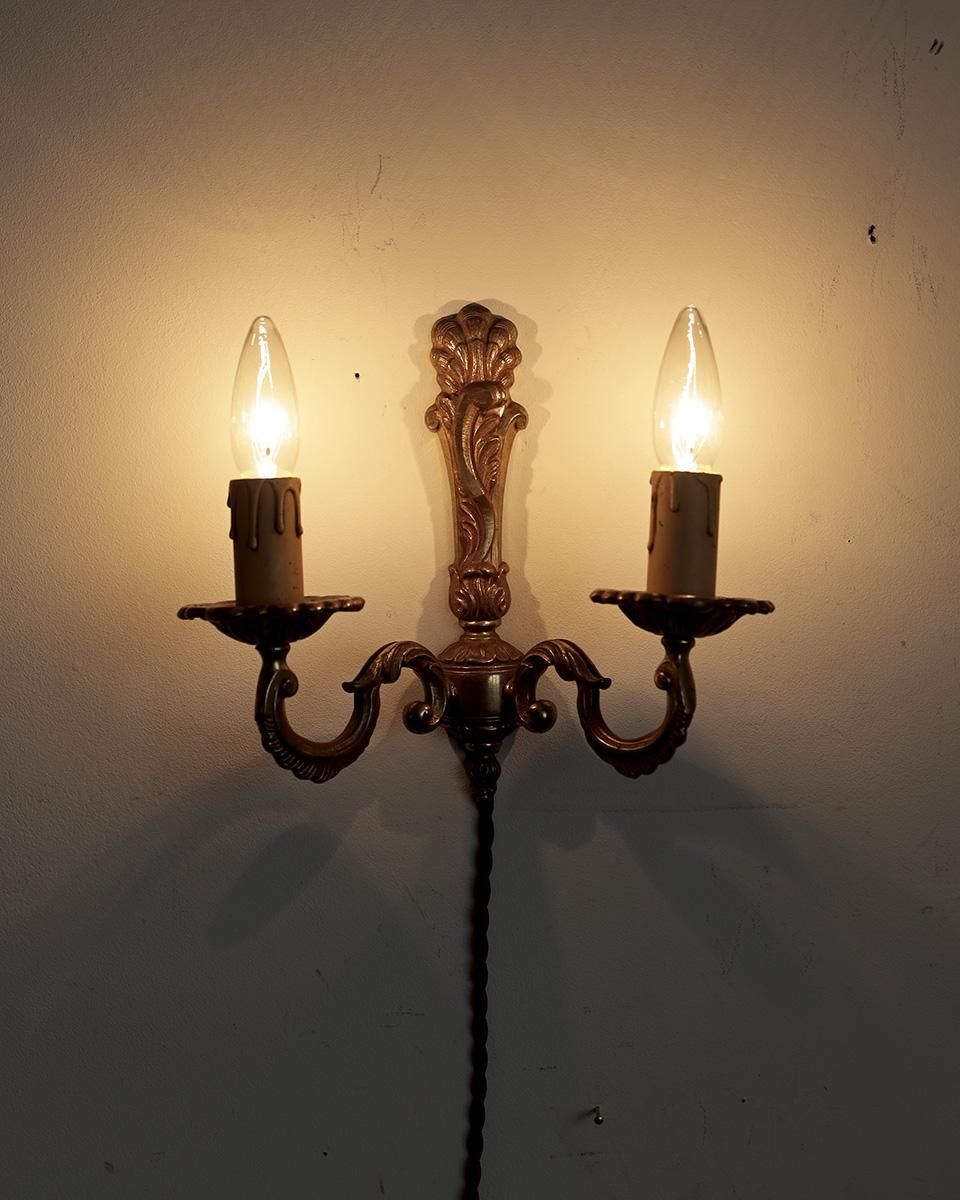 繊細な彫刻が美しい真鍮製のウォールランプ
