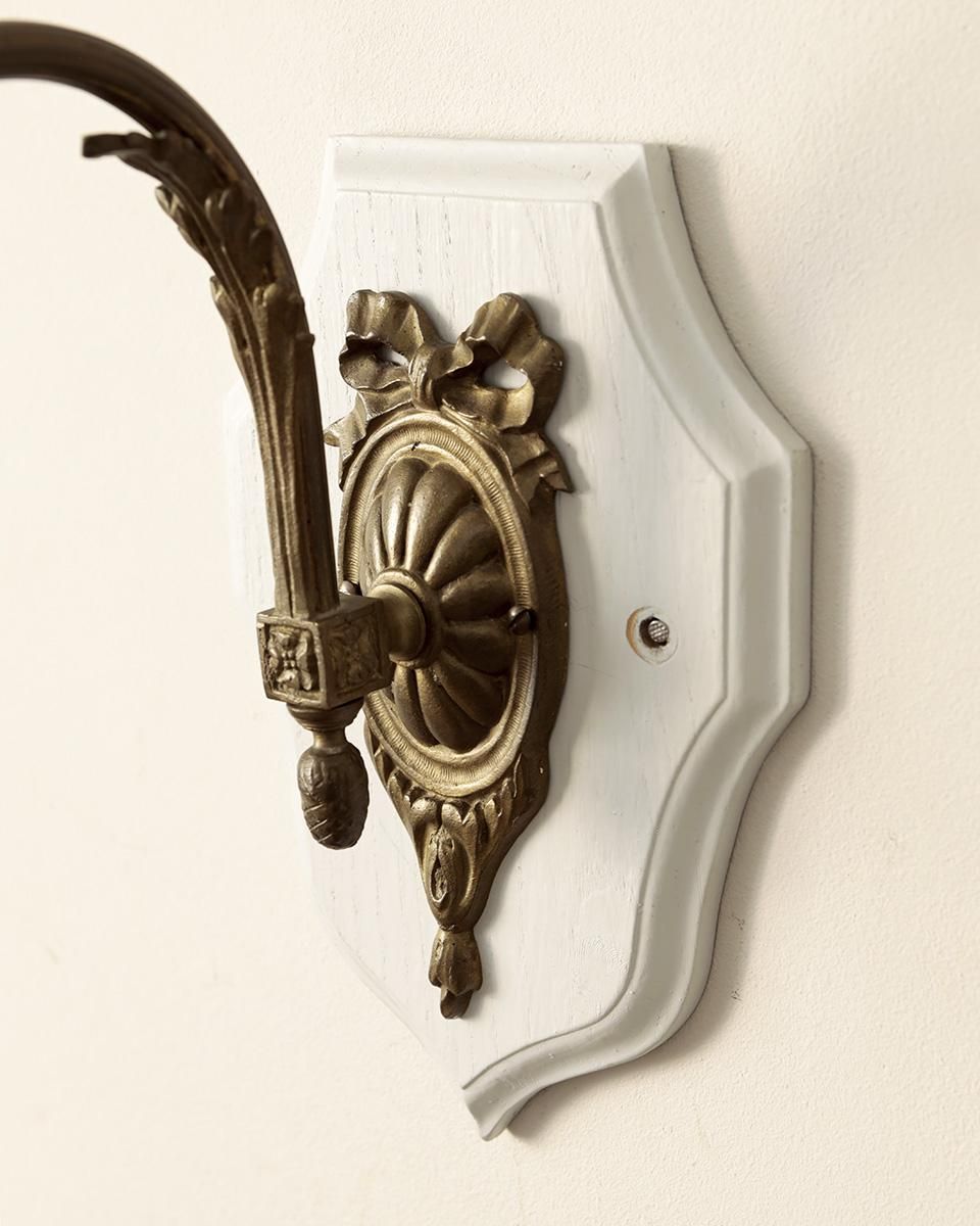 リボンと草花をモチーフとした鈍く輝く真鍮製の装飾に
