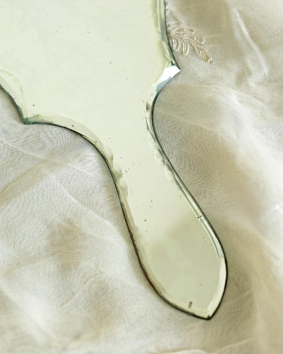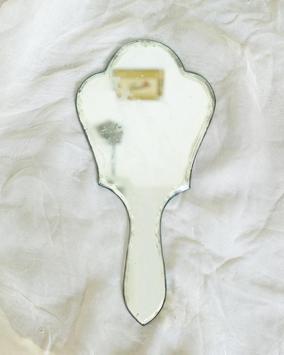 From : France 緩やかなカーブのシルエットが愛らしいハンドミラーです 全面ガラスにその縁にそってカッティングされた装飾が 魅力的な珍しいデザインで、アクセサリーやお花などと 合わせてディスプレイするのにもお勧めです。 ミラー表面に小傷や内側に銀錆、くもりなどがございます。 商品はアンティーク品のため、お写真では伝わり難い 小傷・汚れなどがございます。 追加のお写真をご希望の方はお気軽にお問合せくださいませ。