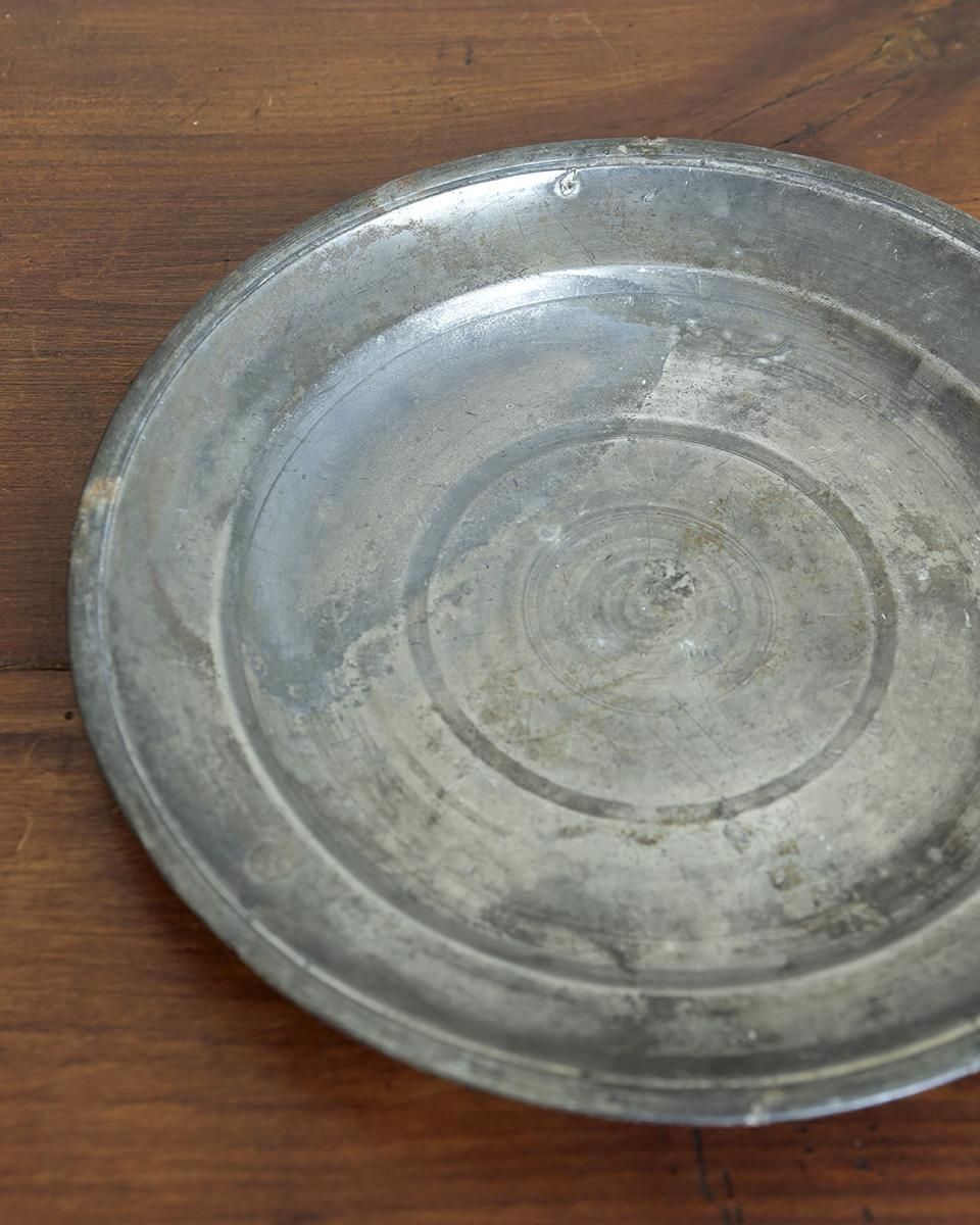 フランス19世紀のエタン(ピューター)製のラウンドプレートです。
