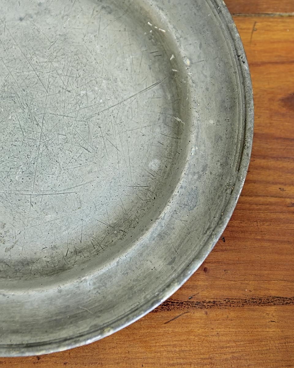 フランス19世紀のエタン(ピューター)製のラウンドプレートです。