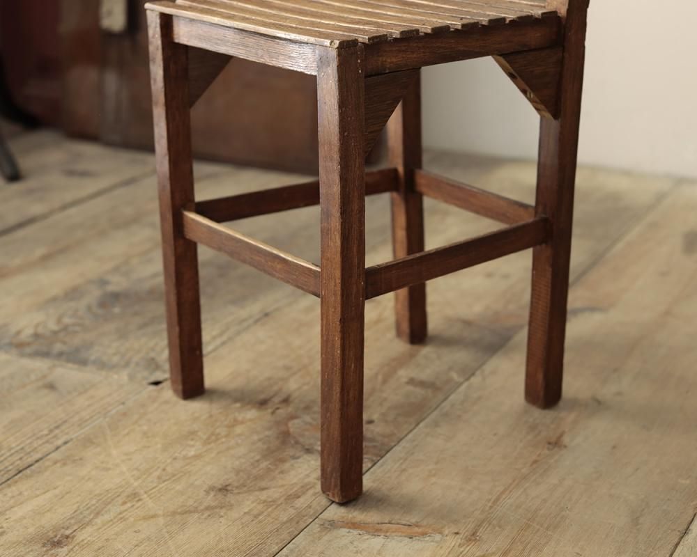 From : France シンプルなデザインのウッドチェアです。 小ぶりなサイズに座面から背もたれまで綺麗に並ぶ スティックデザインが特徴的なウッドチェアです。 座面がフラットになっているので、サイドテーブルや 植物などを飾る花台としてもお勧めです。 商品はアンティーク品のため、お写真では伝わり 難い色褪せや小傷、歪みなどがございます。 追加のお写真をご希望の方はお気軽にお問合せくださいませ。 残り在庫:1点