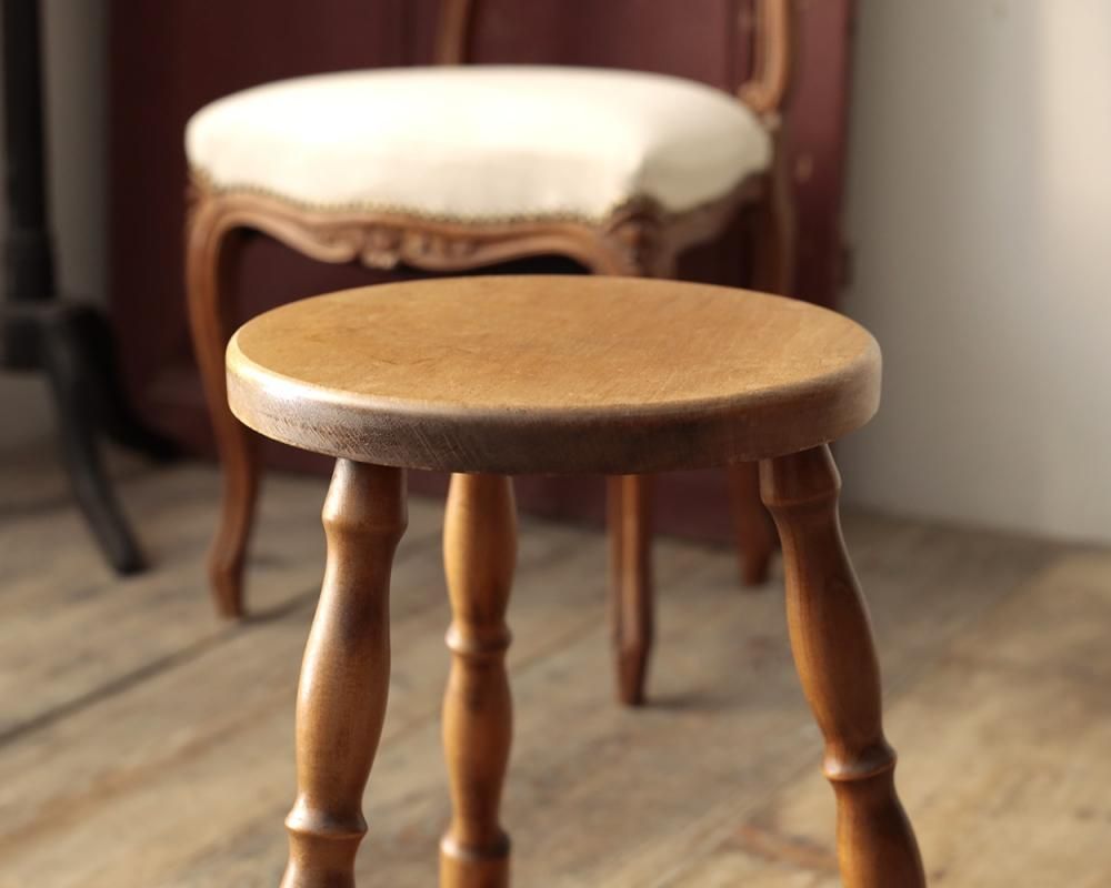 シンプルなデザインの3本脚のスツールです。
