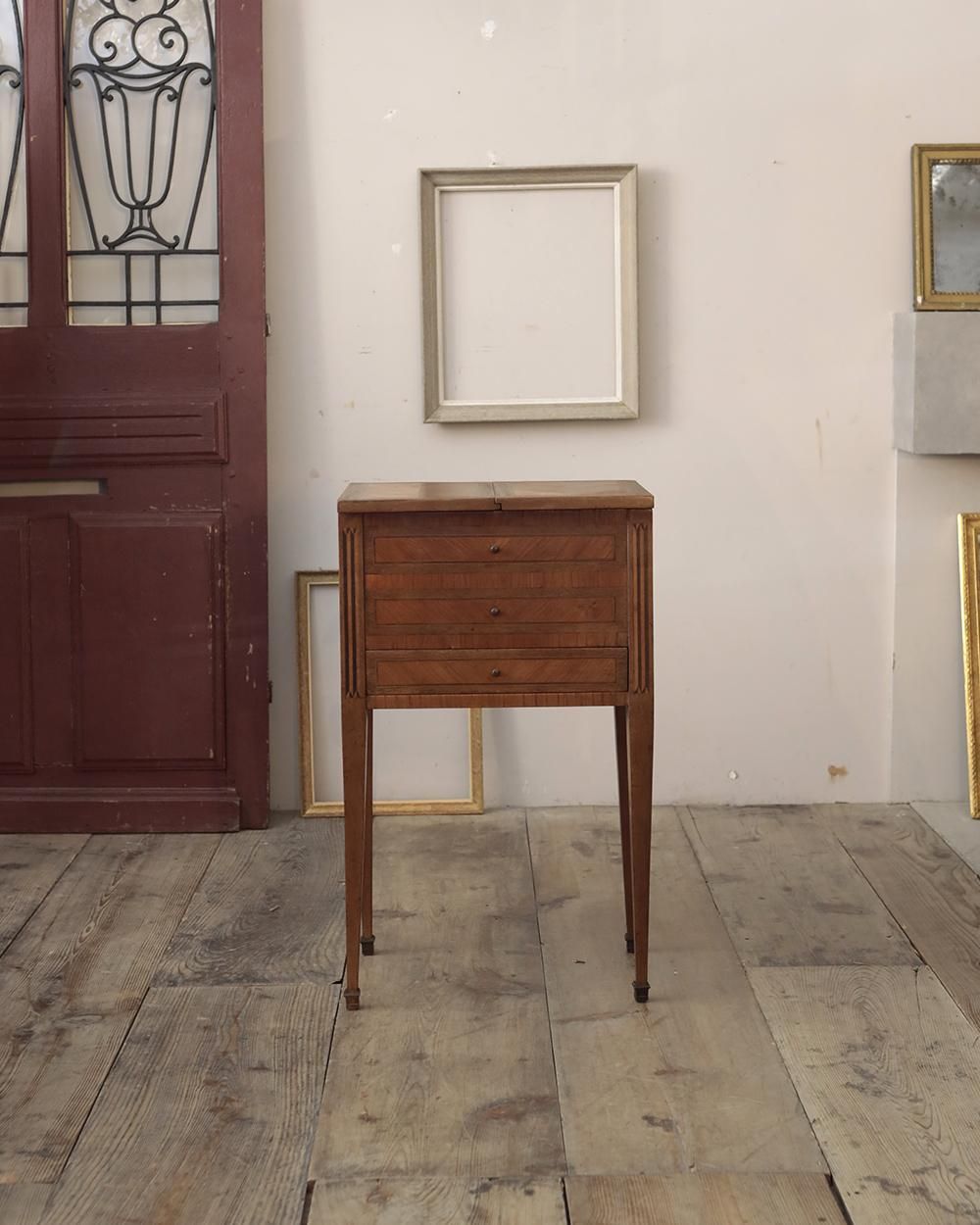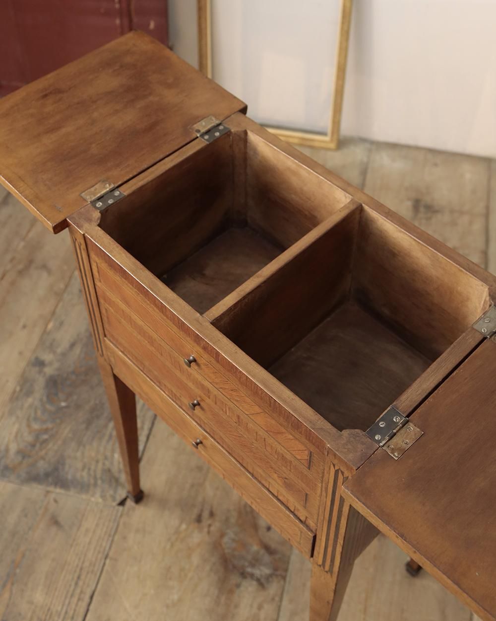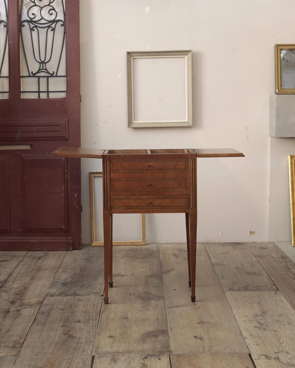 美しい象嵌細工(インレイ)が目を惹くソーイングテーブルです。