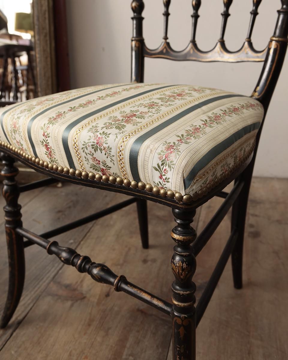 がとても美しく、また座面に施された花柄のファブリックが