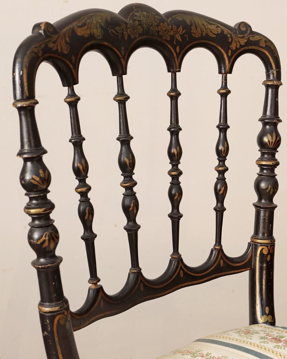 ブラックペイントのフレームにゴールドで描かれた花模様