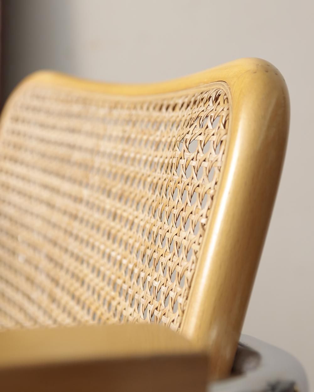 また、籐張りの背もたれと座面が、柔らかく身体を支えてくれ