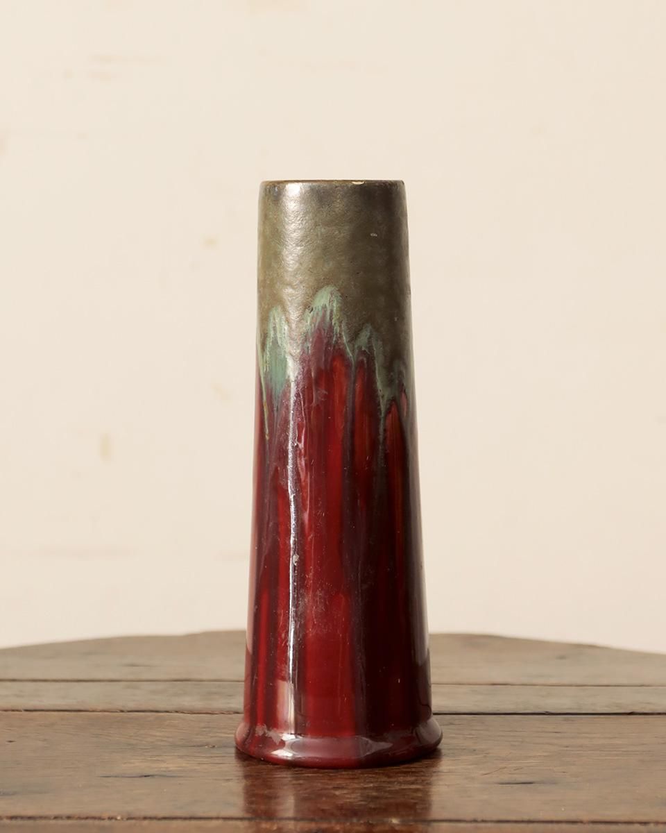 シックな赤色のベースに独特な釉薬のカラーリングが