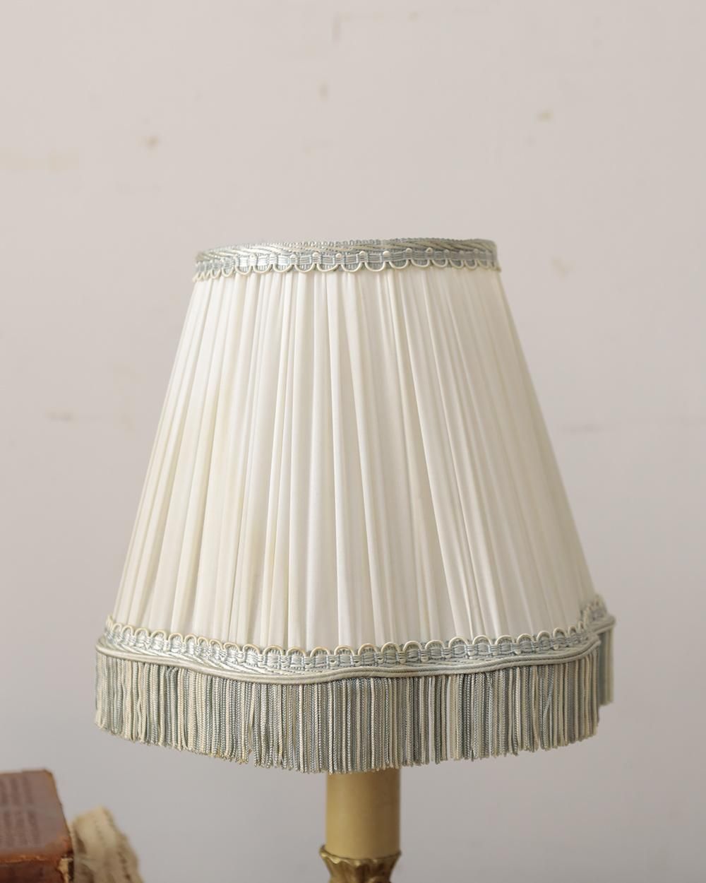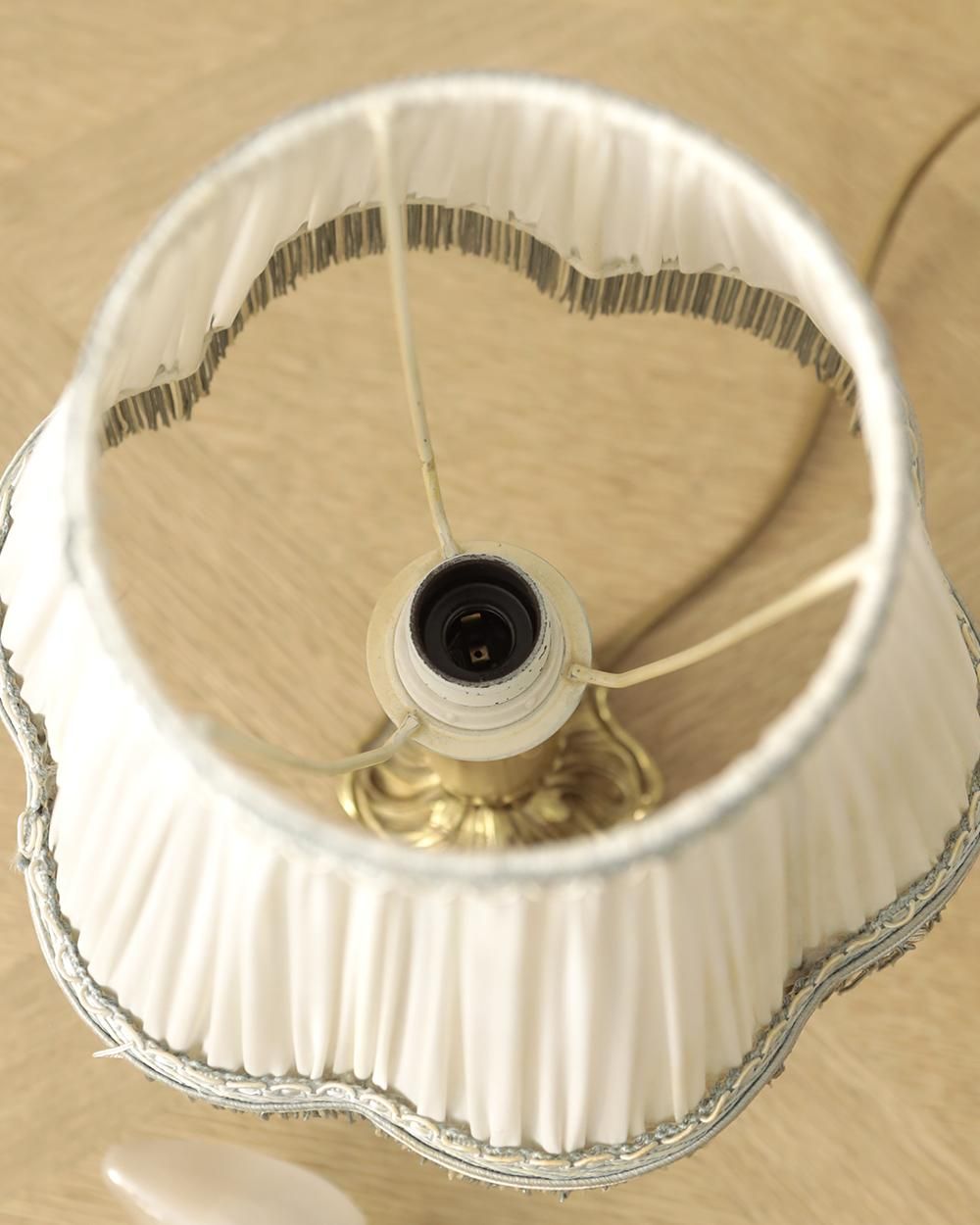 布製のシェードには細かなギャザーやリボン