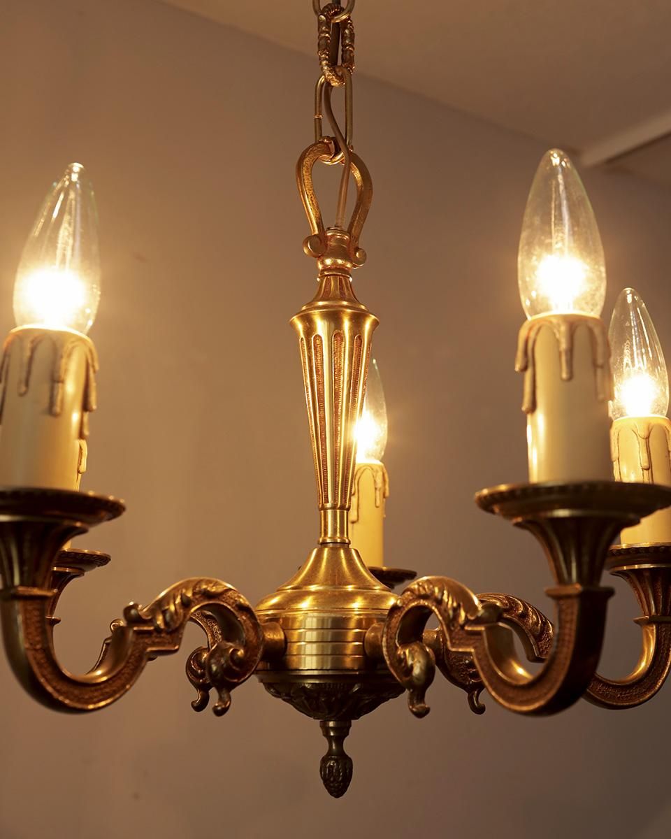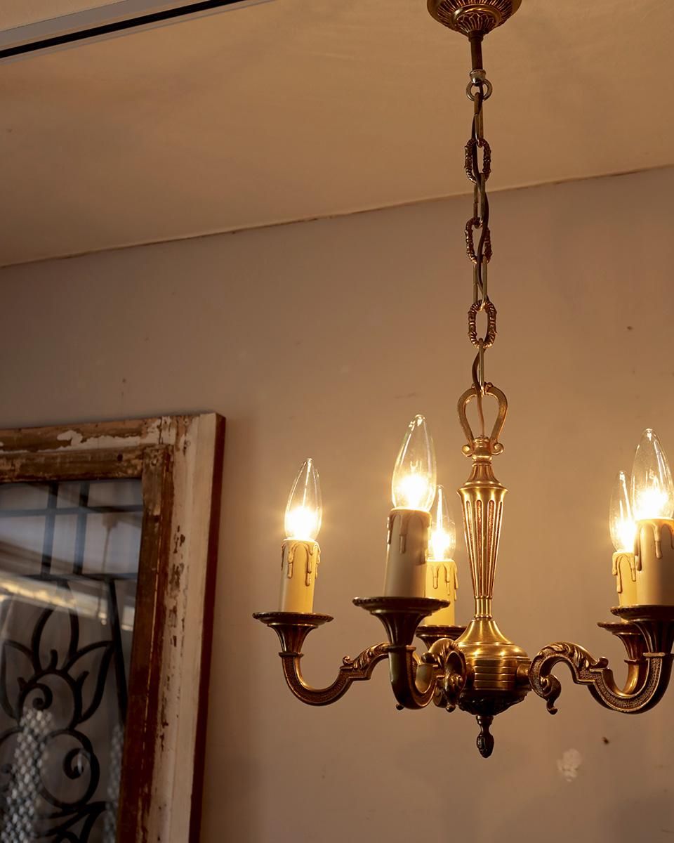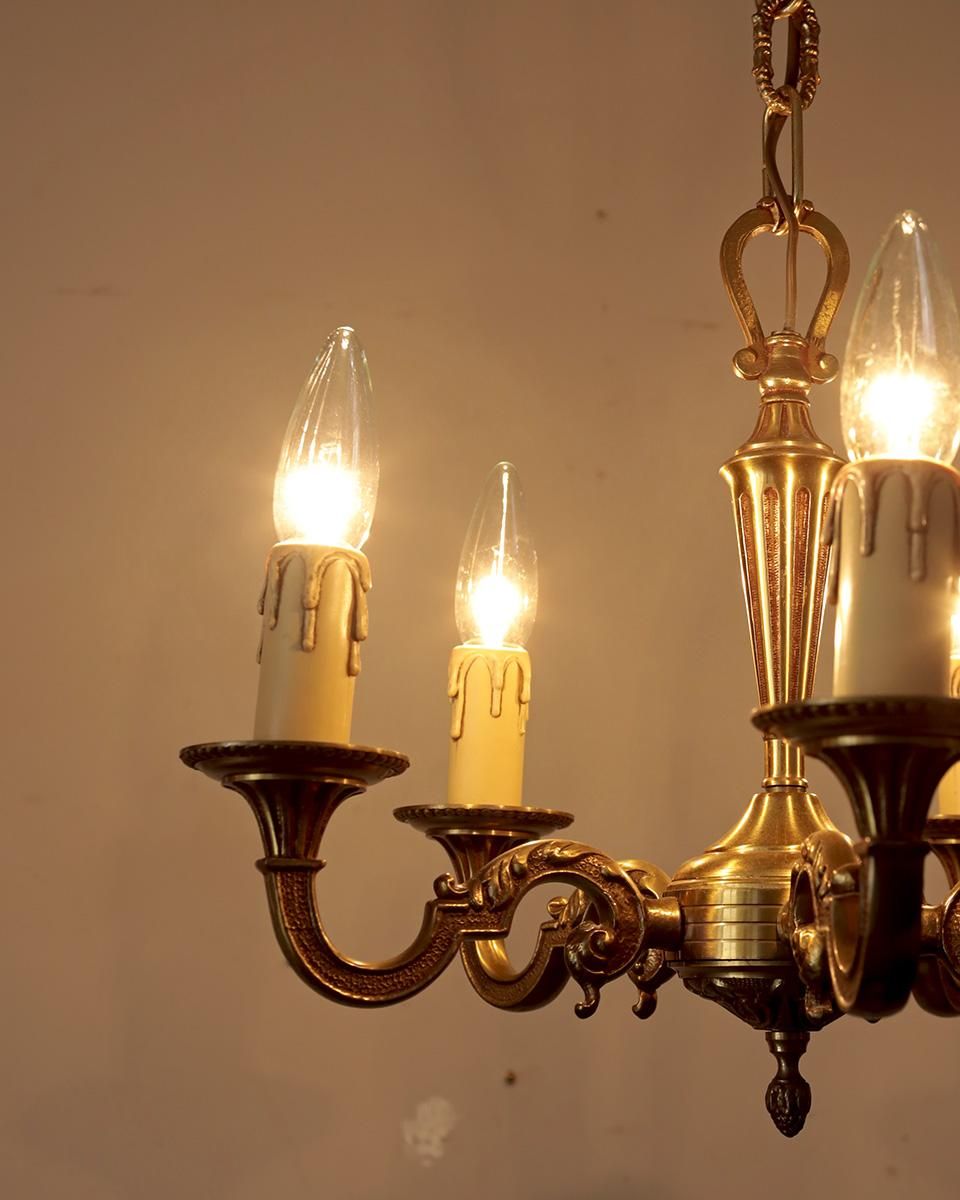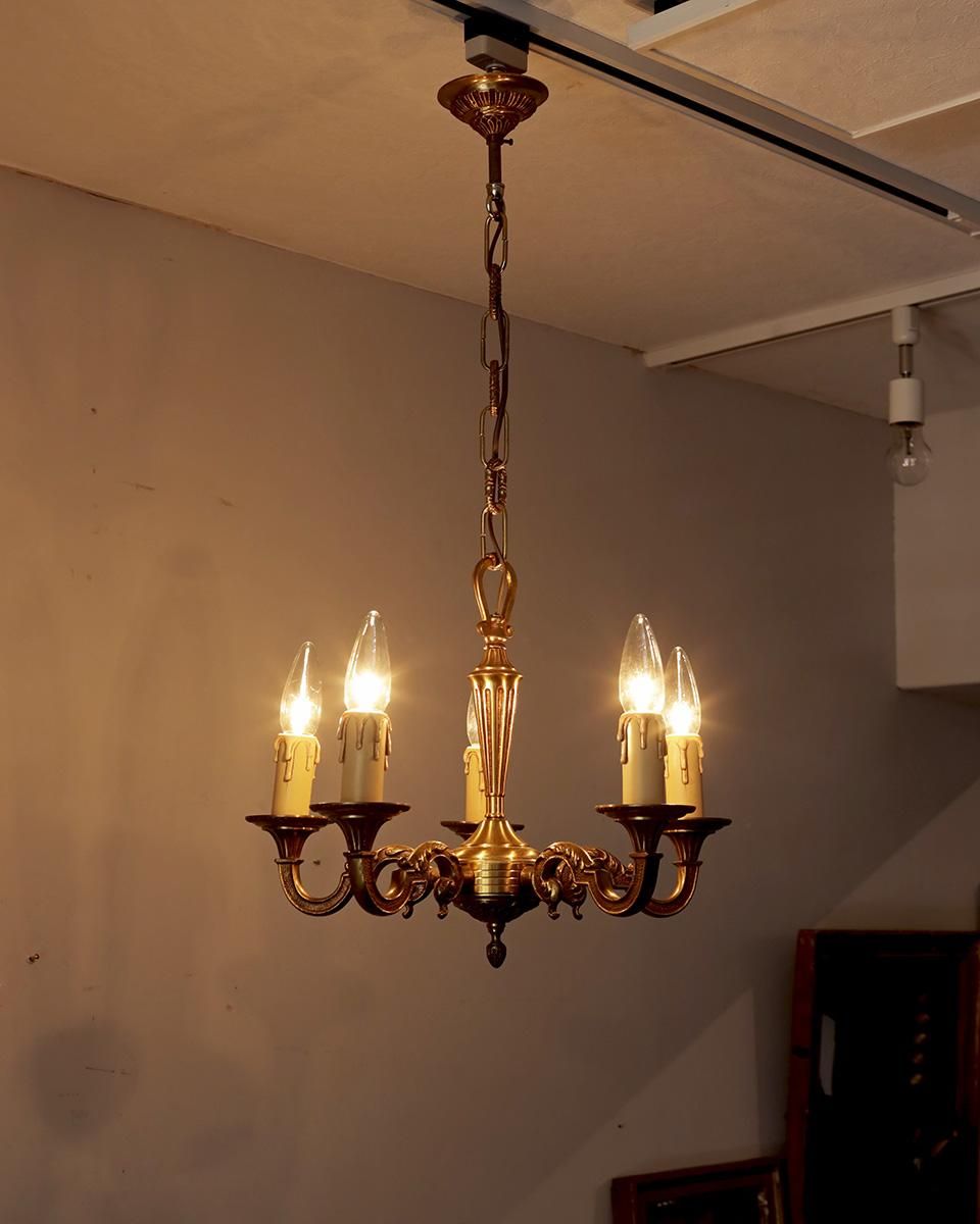 ブロンズ製のゴールドのシャンデリアです。