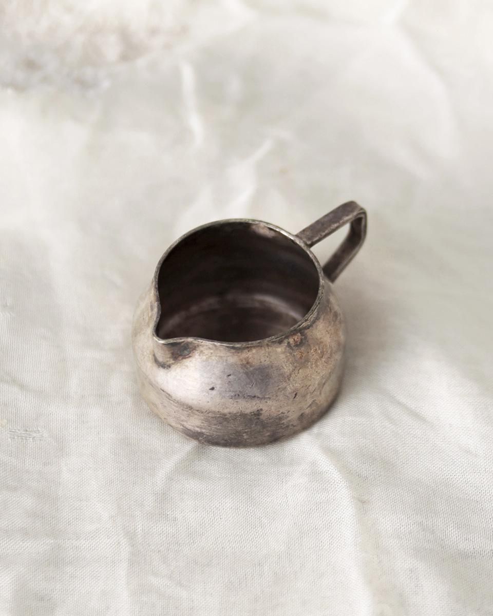 小ぶりなサイズのシルバーのミルクジャグです。