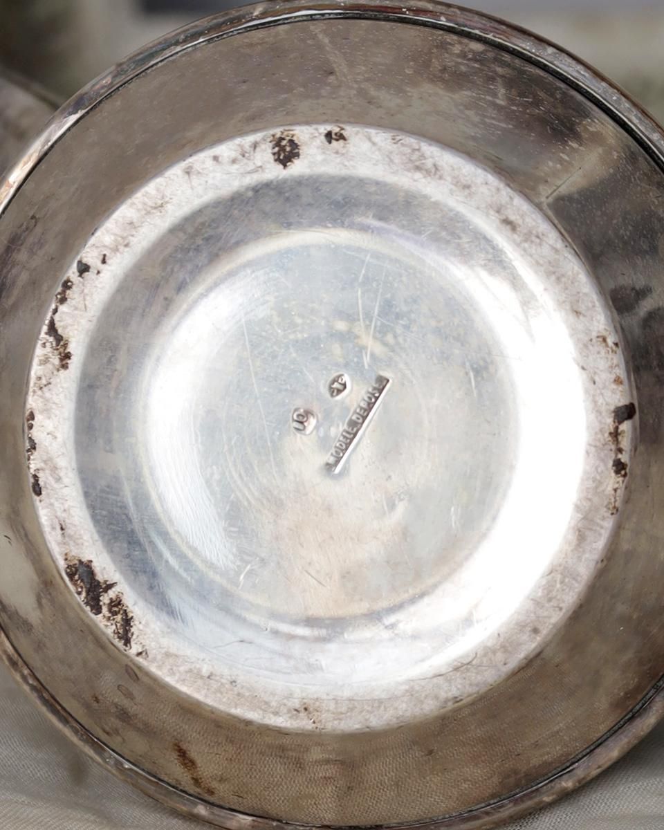 シルバー用の研磨剤などで磨くと銀の光沢も出ます。