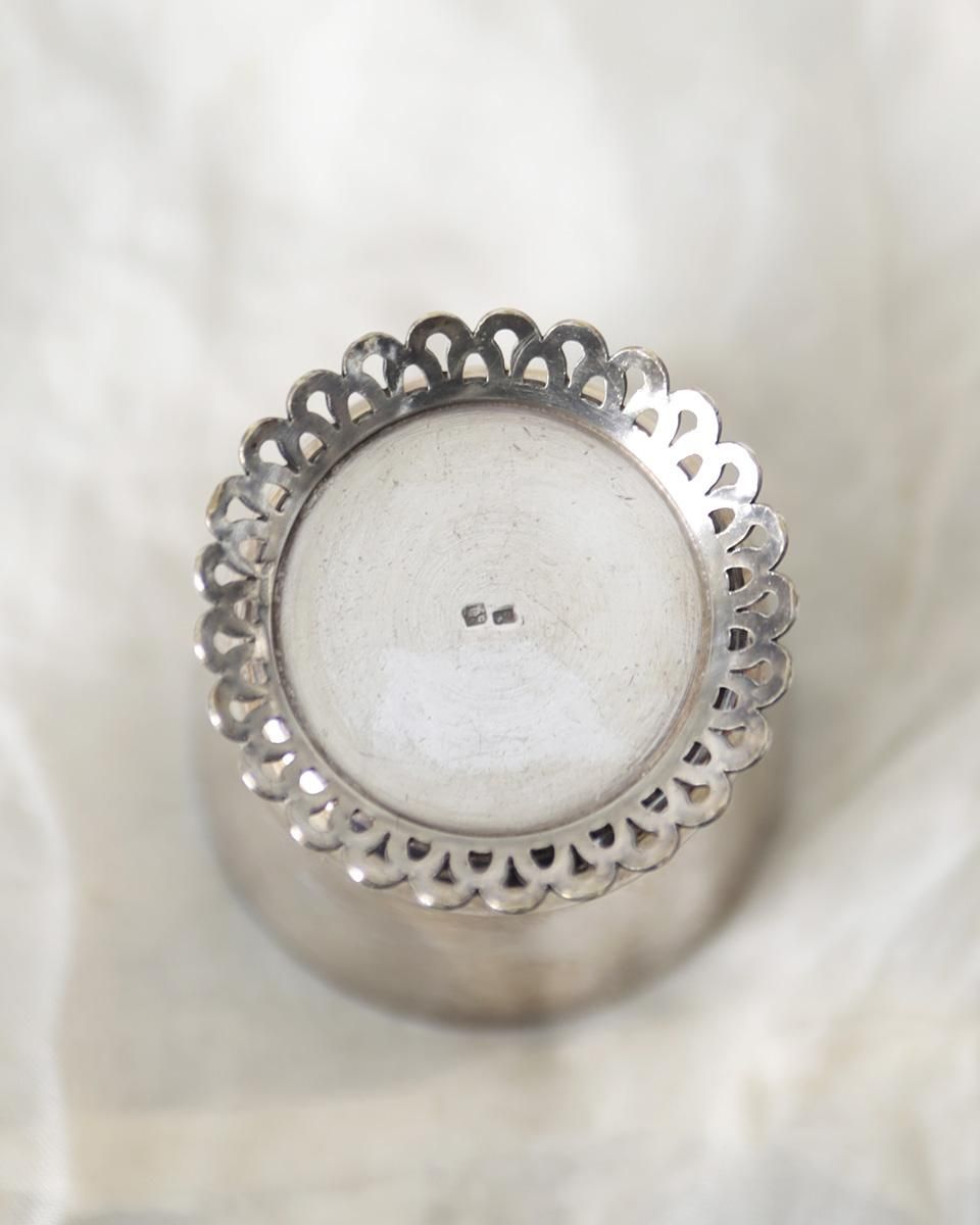ボトム部分に施された花びらのような透かし彫りの装飾が