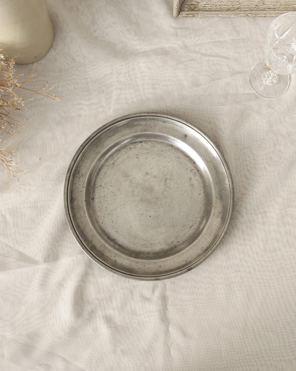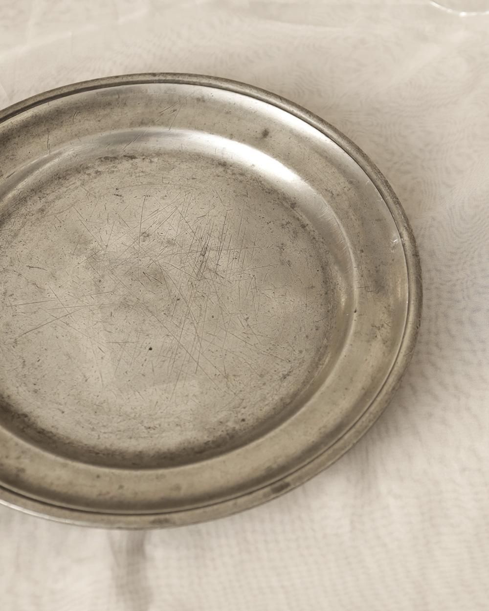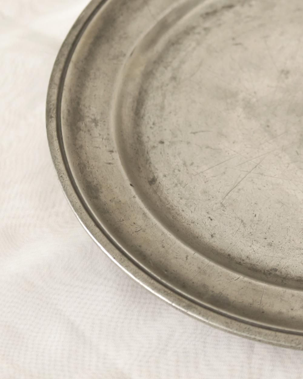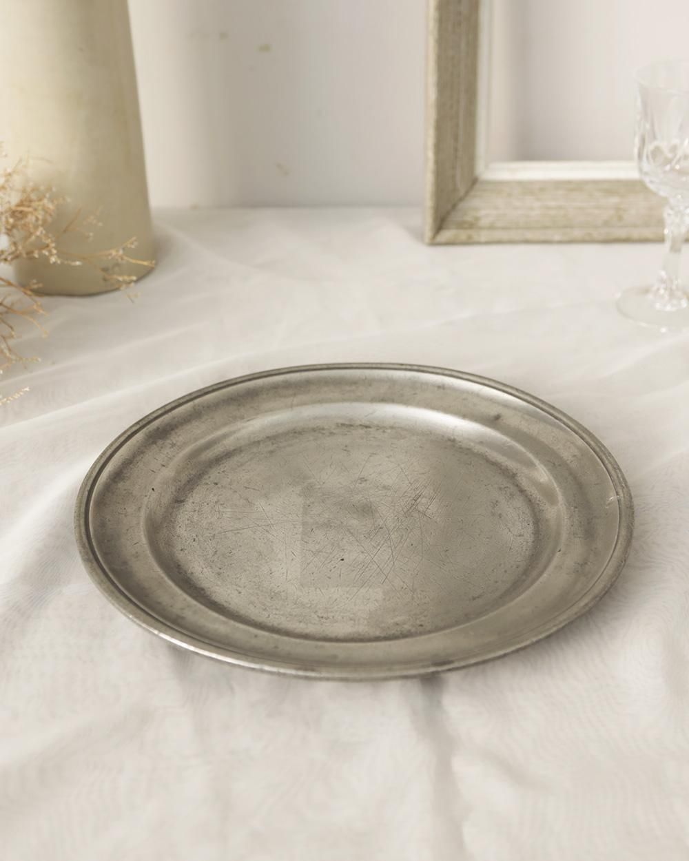 フランスの古いピュータ― (エタン)製のラウンドプレートです。