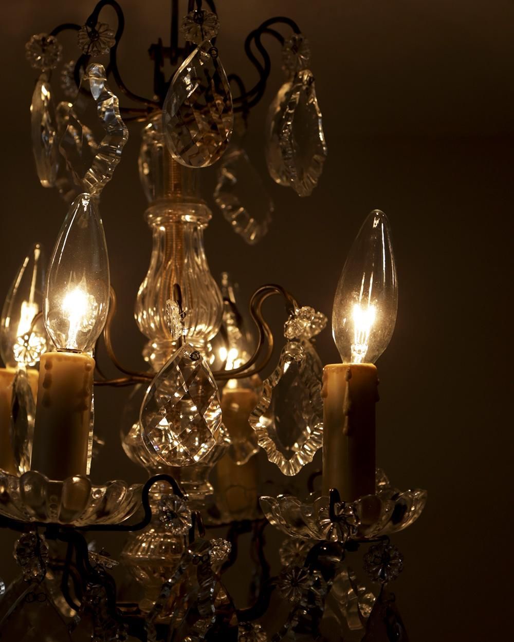 美しく輝く4灯タイプのシャンデリアです。