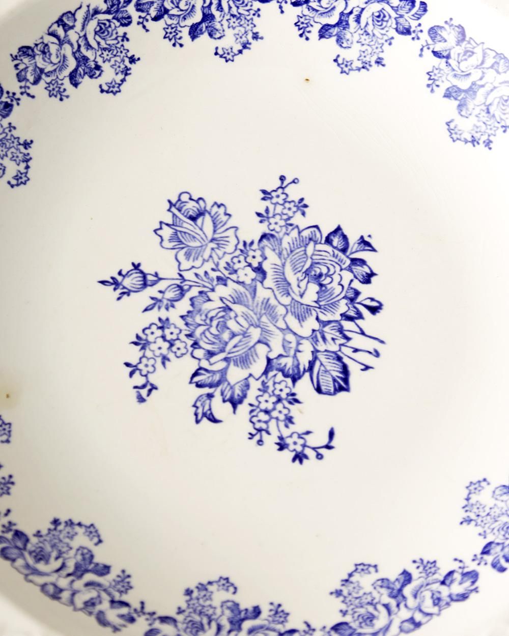 施されたリムに、ブルーで描かれたバラの花が