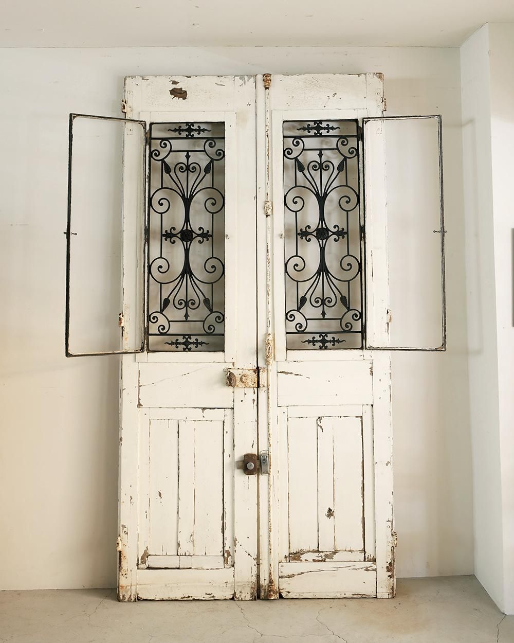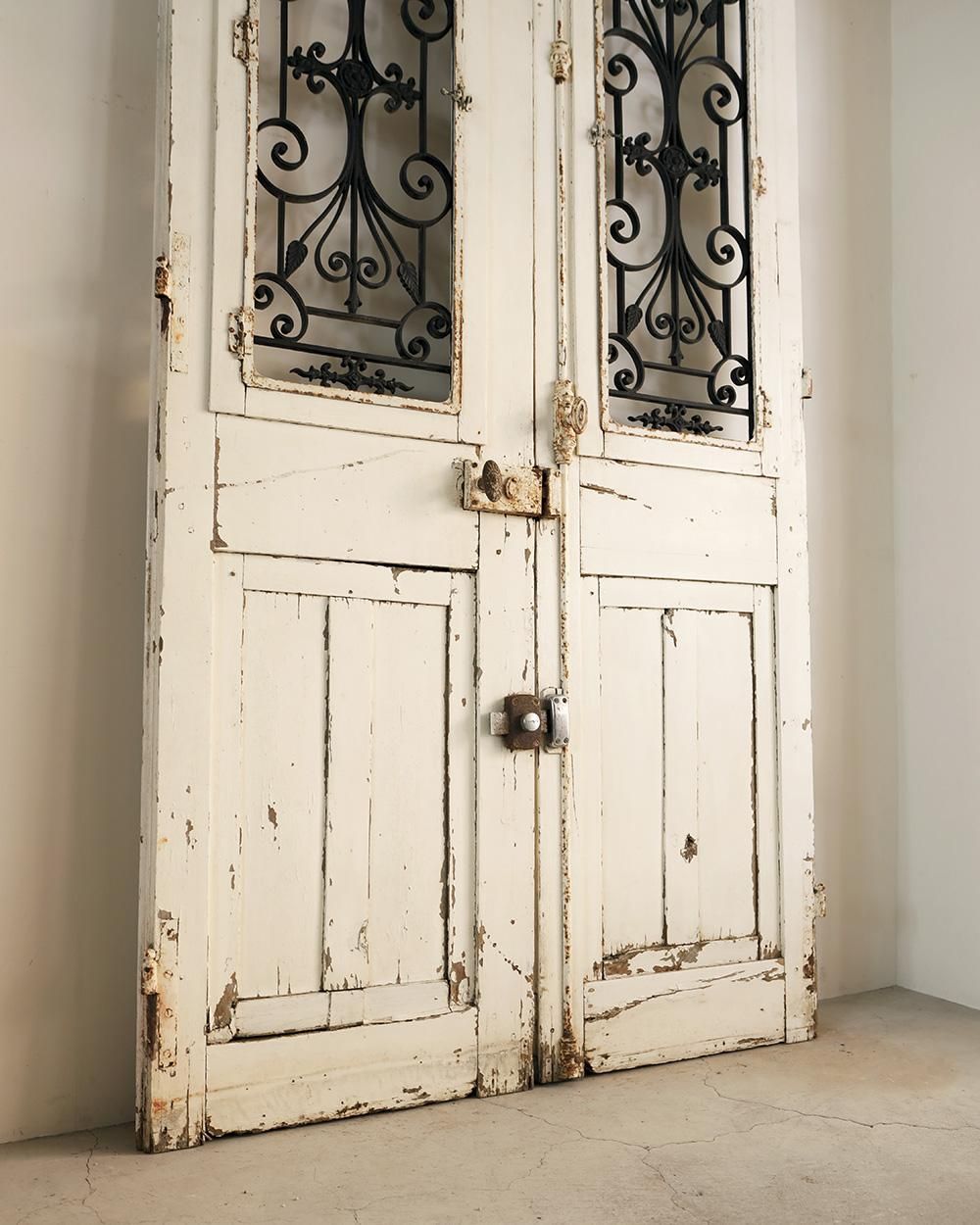アイアンの格子がはめ込まれた木製のダブルドアです。