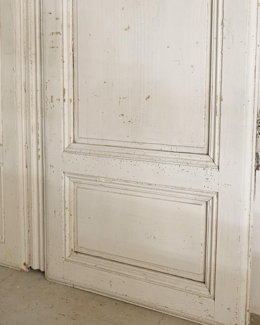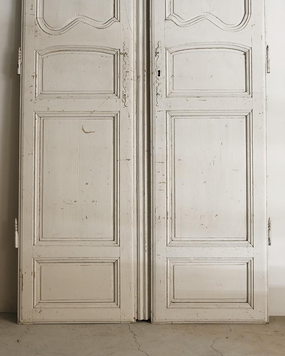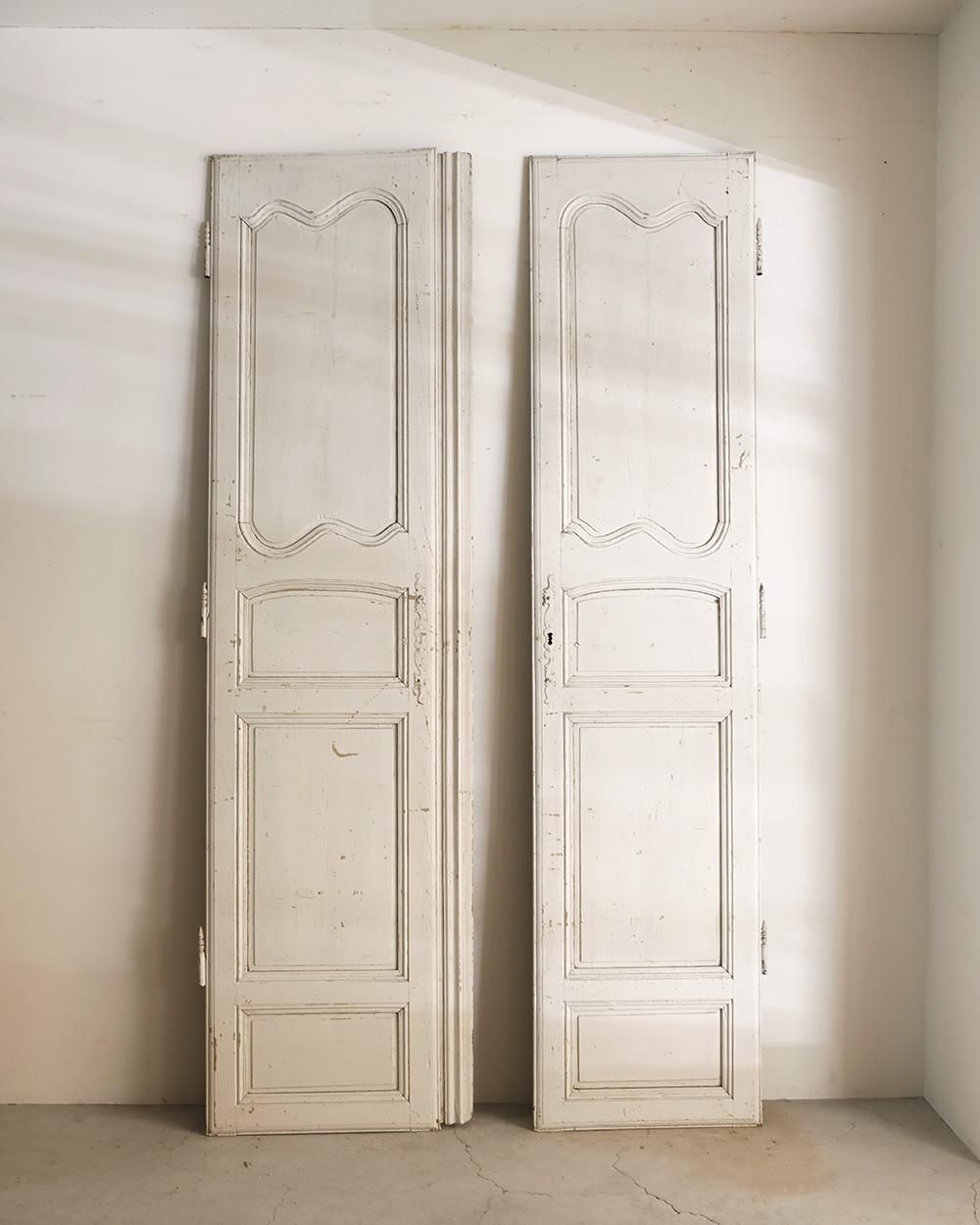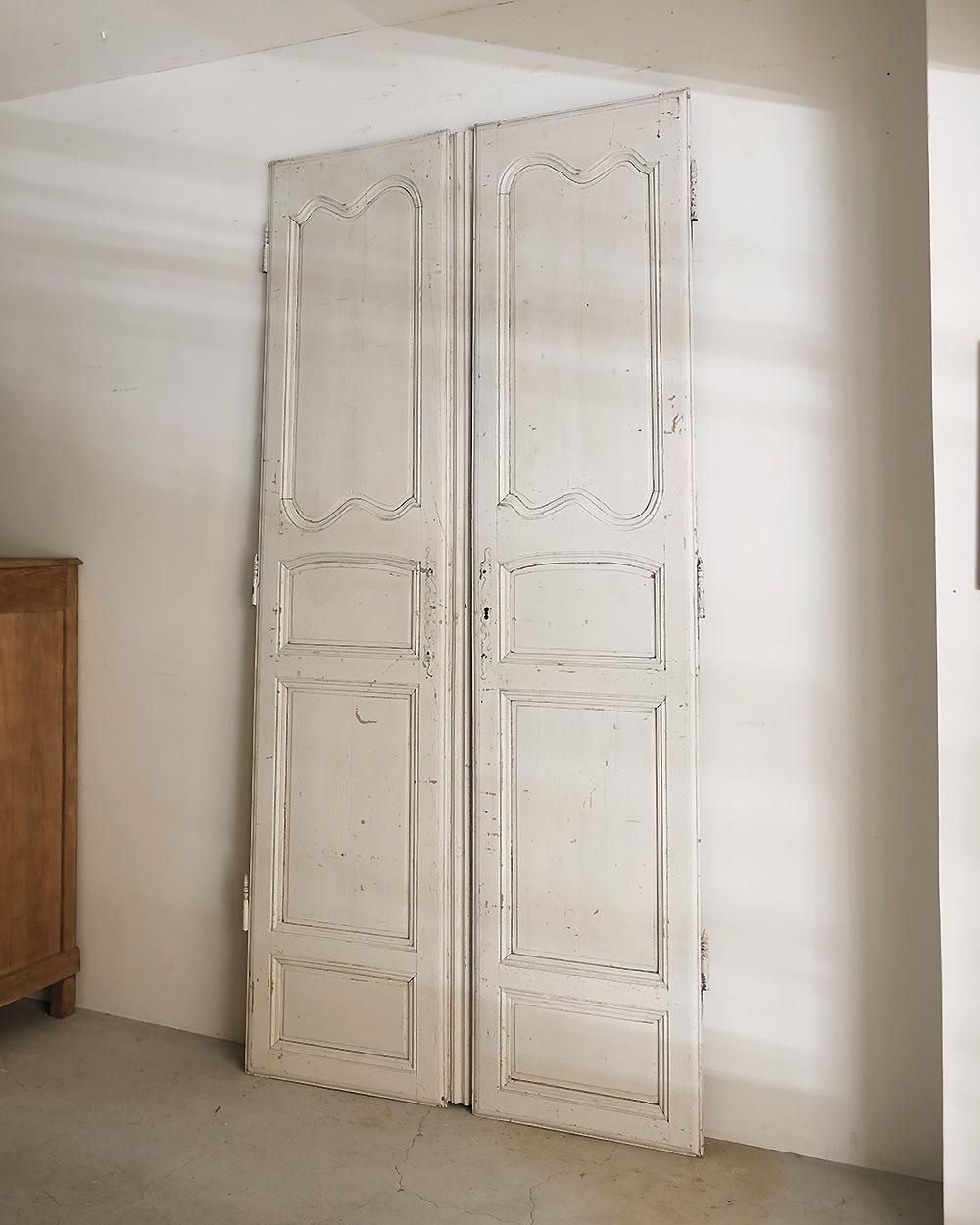 ホワイトペイントが施された木製のダブルドアです。