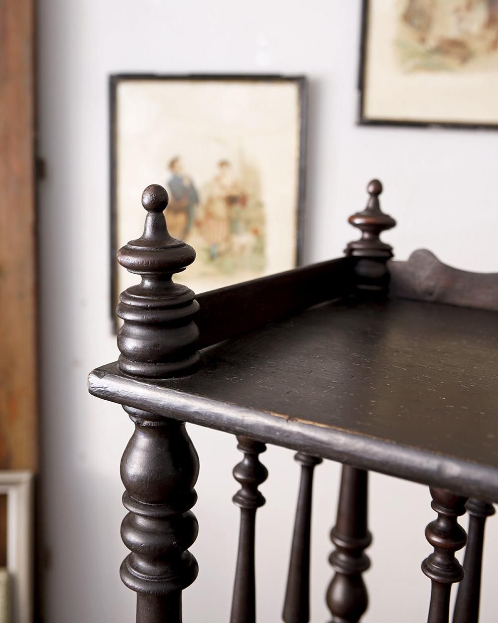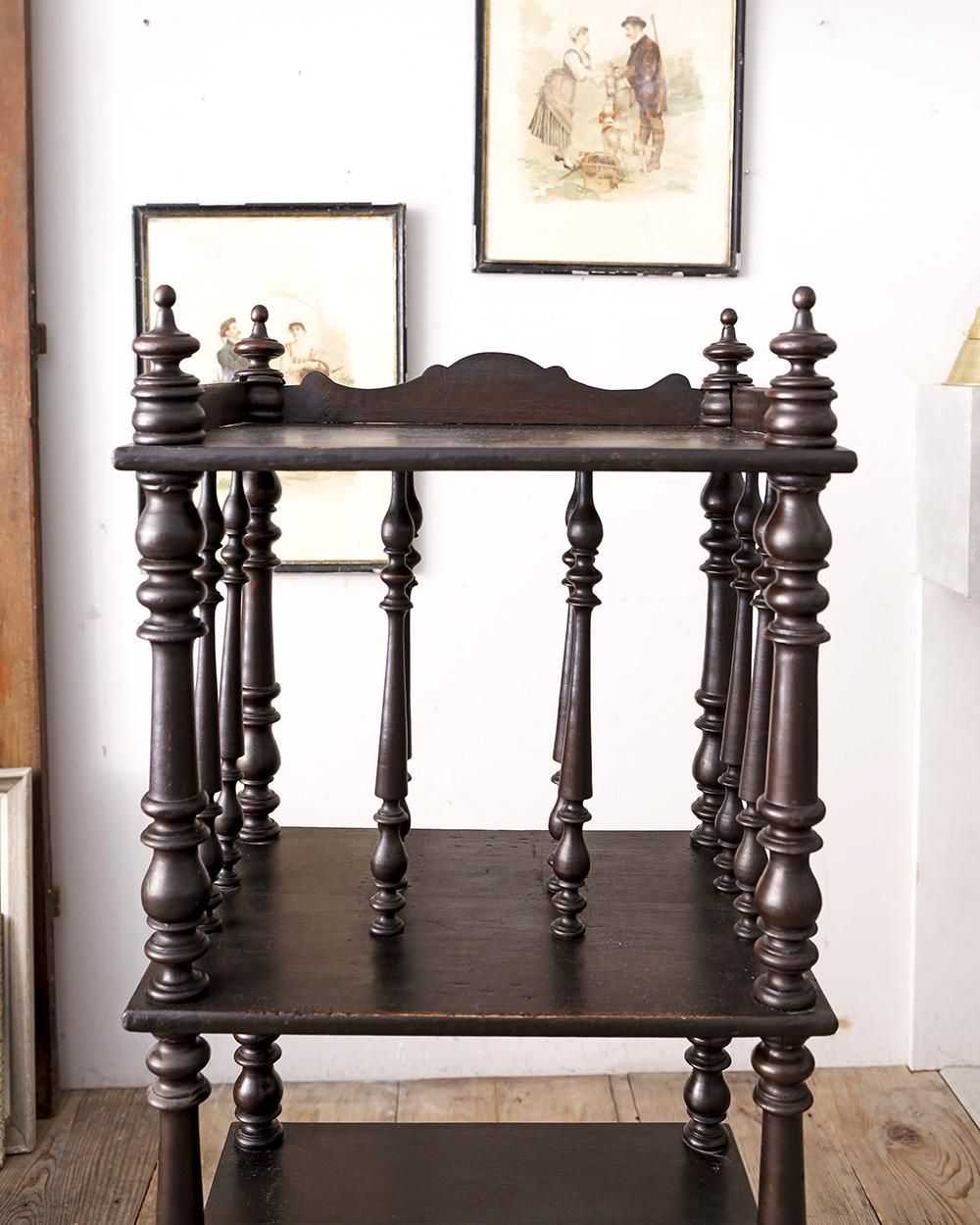 ダークブラウンのカラーに細やかなろくろの装飾が施された