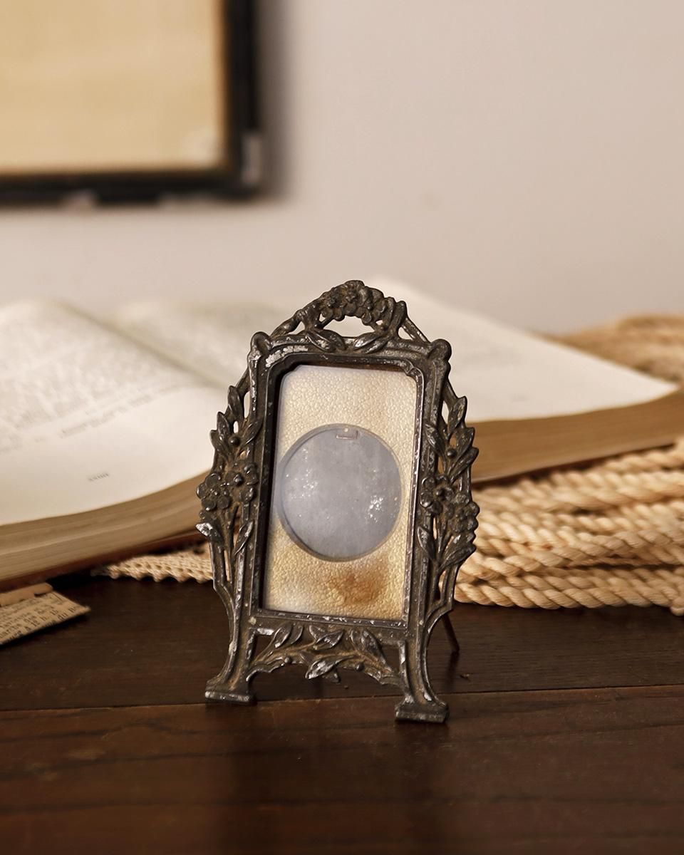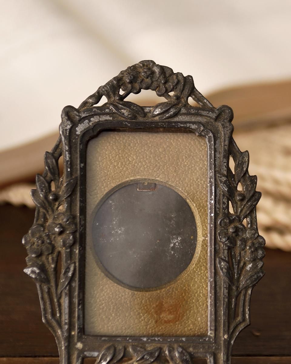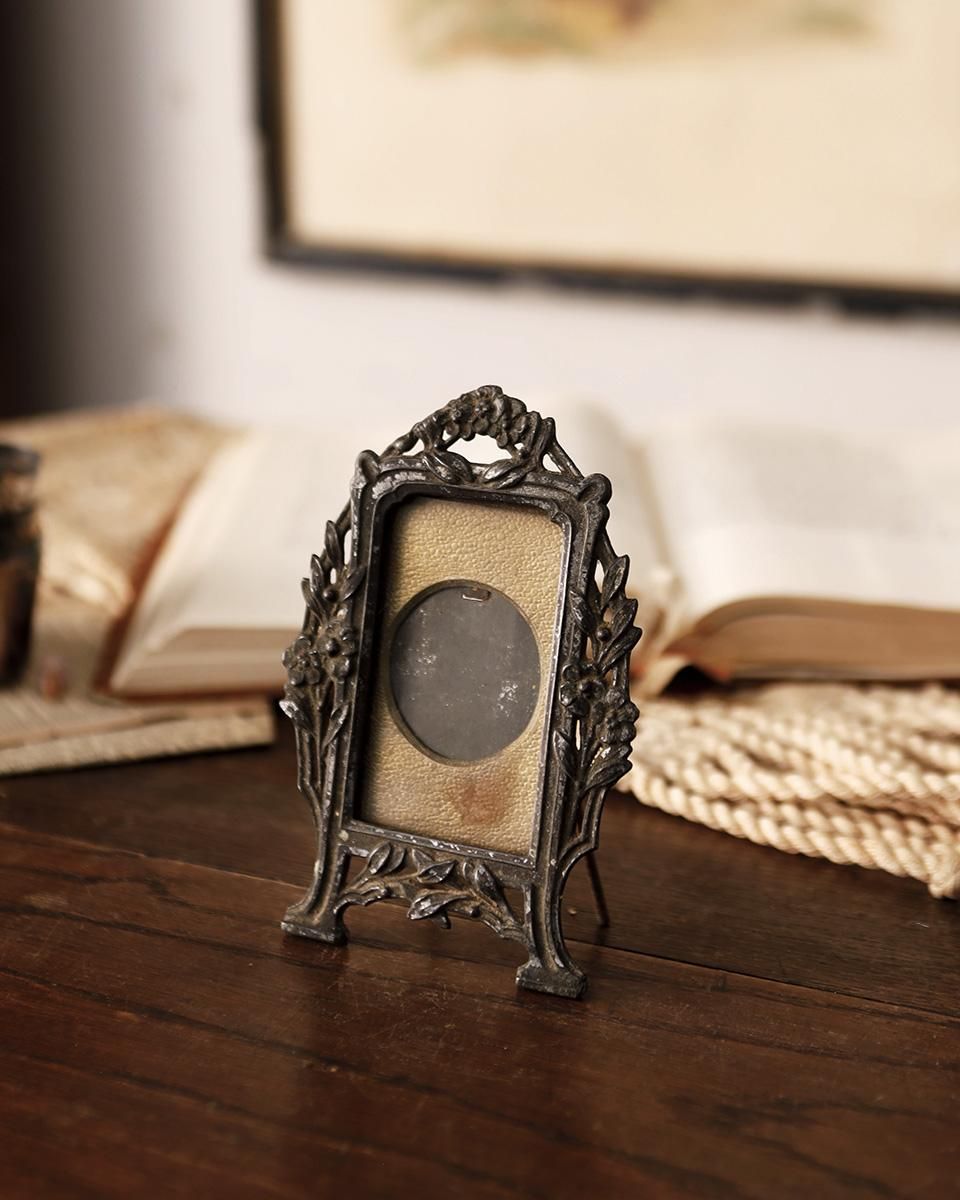 写真を囲う繊細で美しい透かし彫り彫刻が施された
