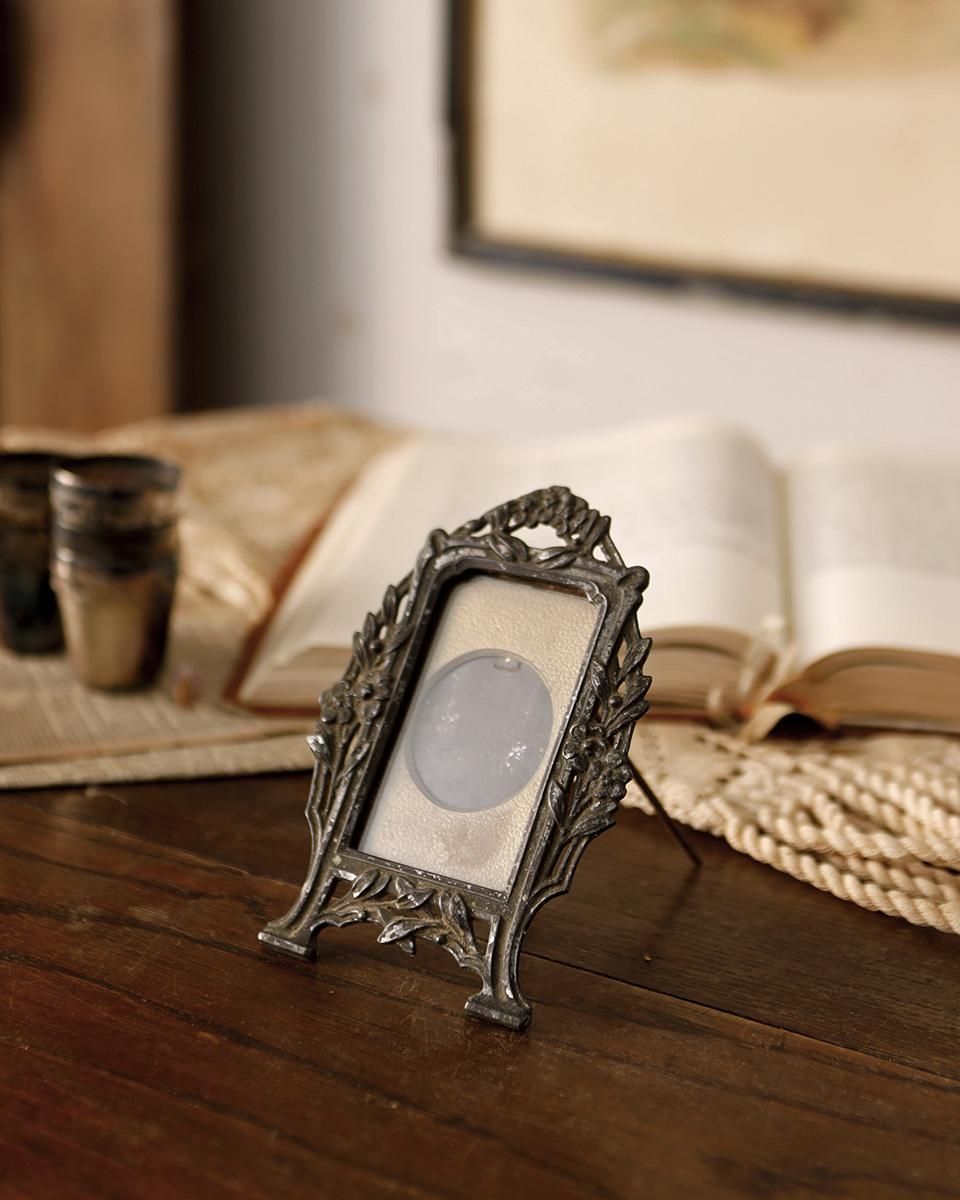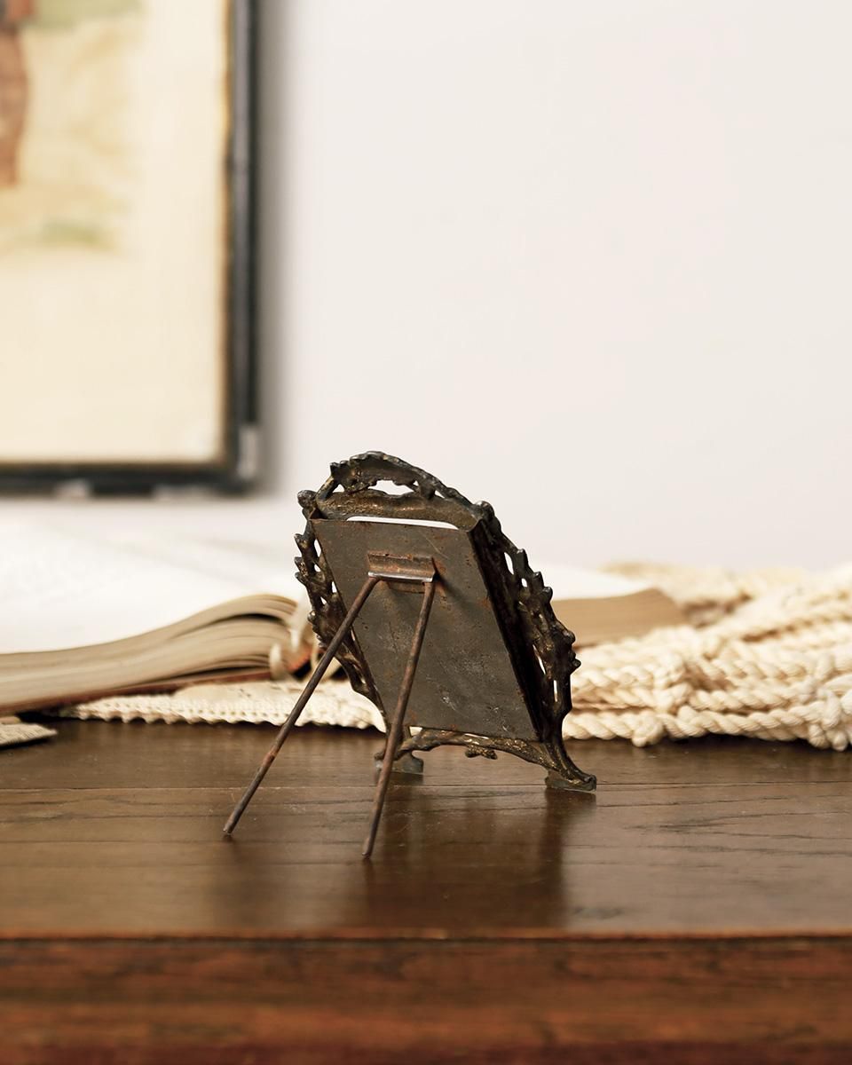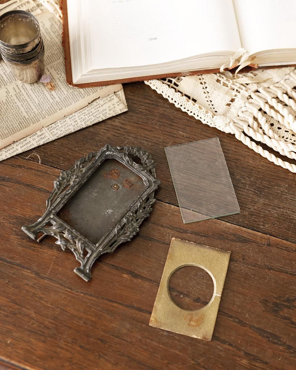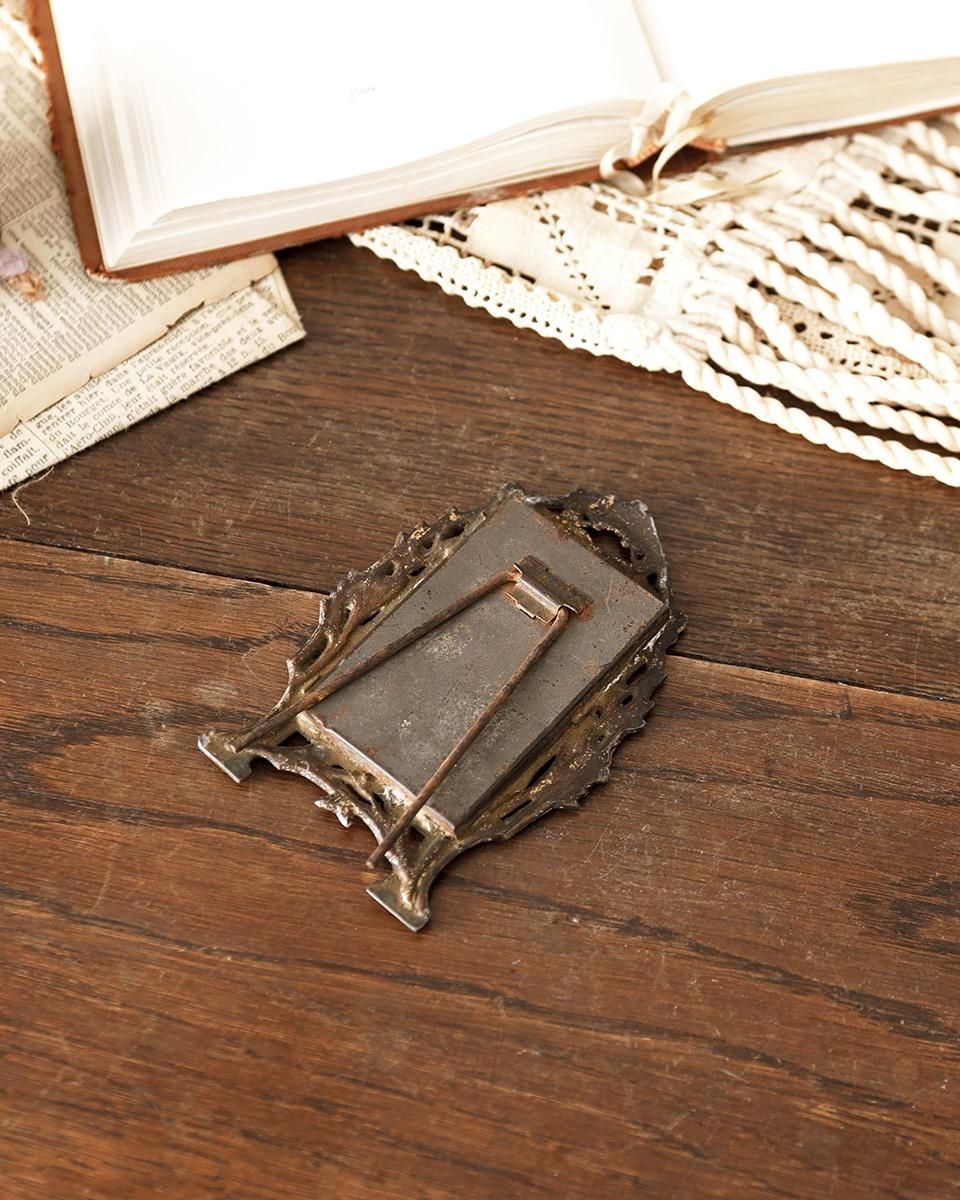 写真を囲う繊細で美しい透かし彫り彫刻が施された