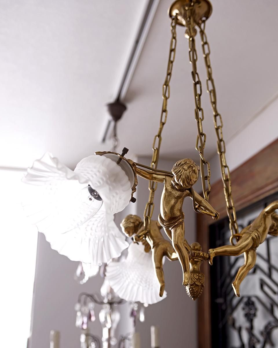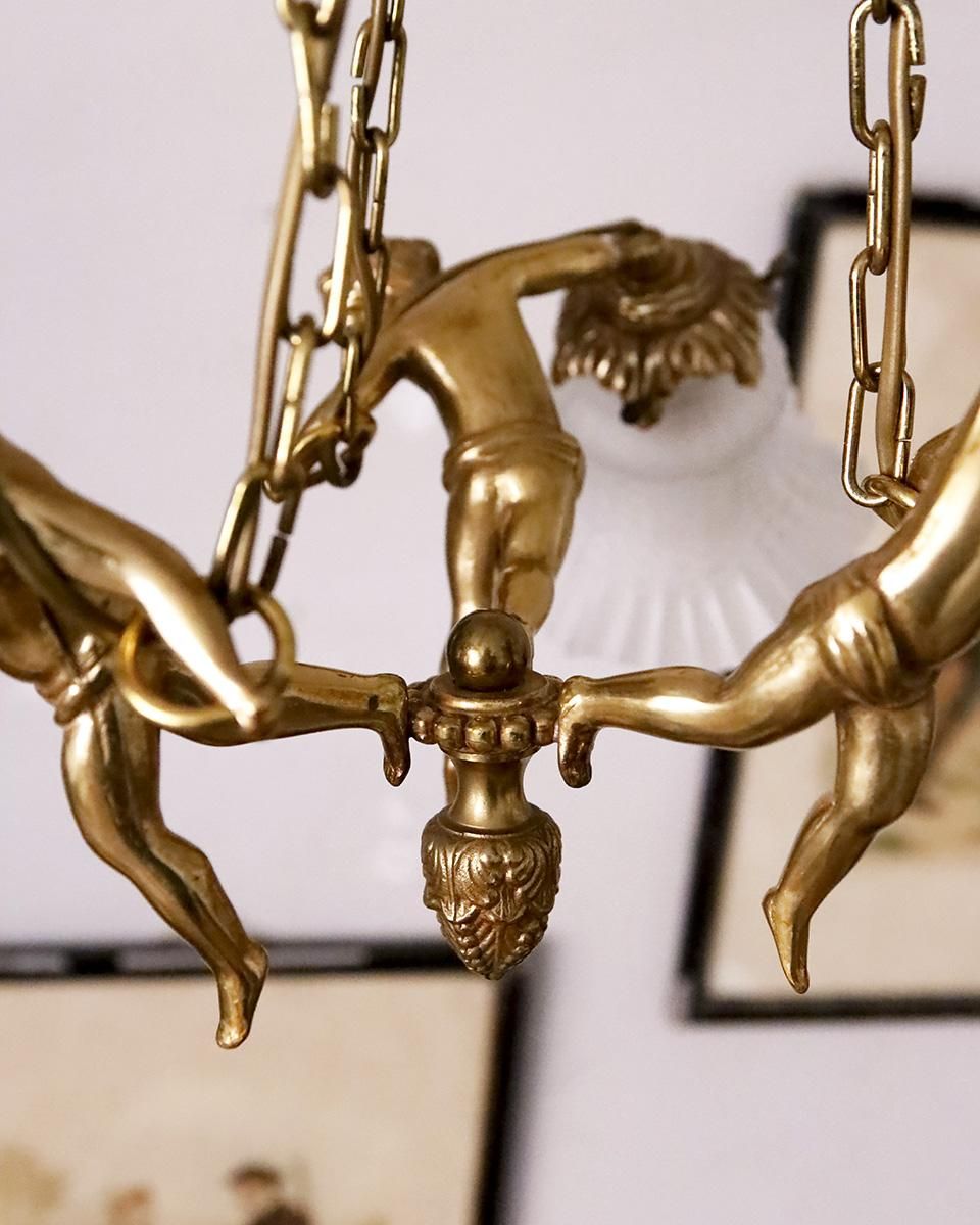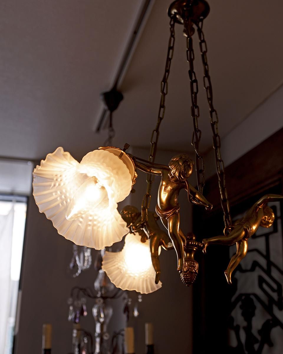 デザインが目を惹く、真鍮製の3灯タイプのシャンデリアです。