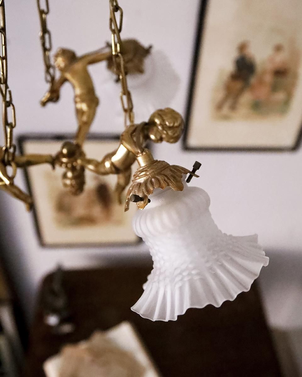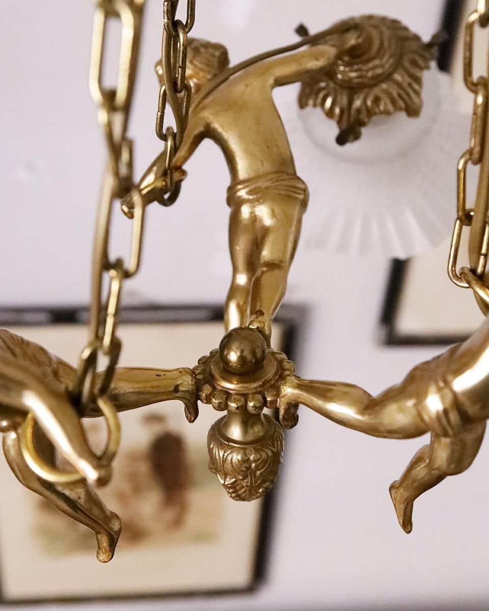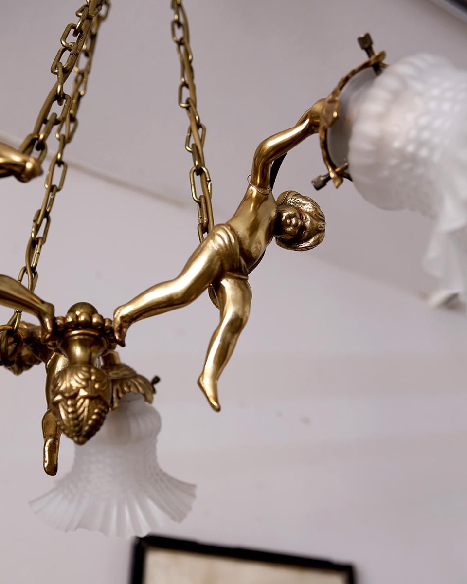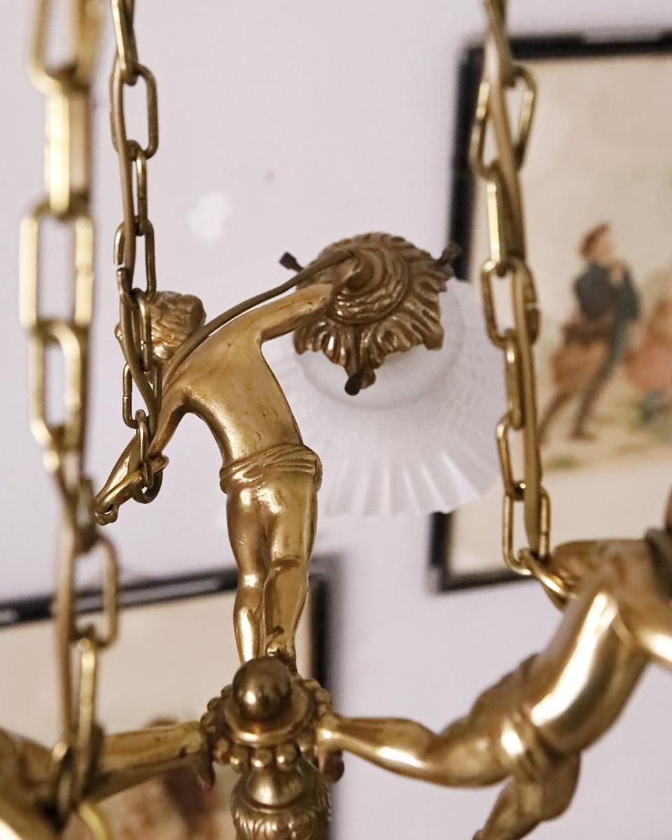 デザインが目を惹く、真鍮製の3灯タイプのシャンデリアです。