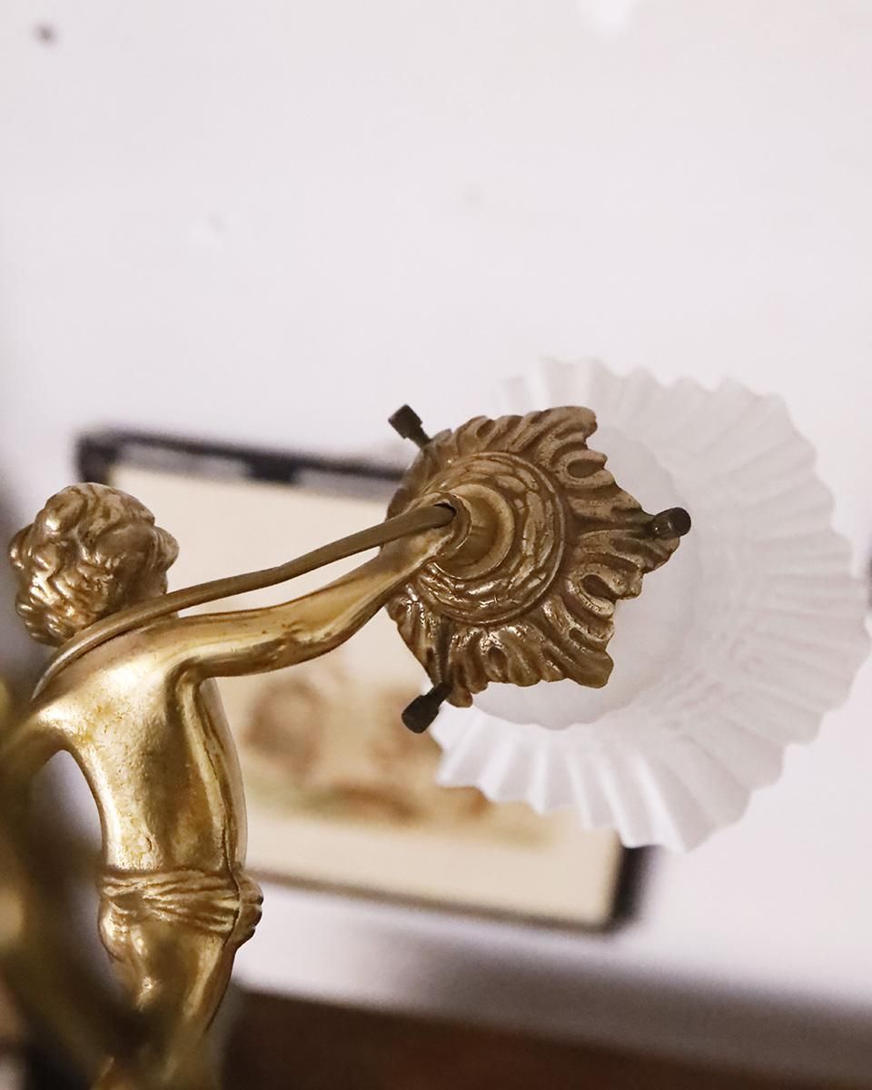 ゴールドに輝く天使のフィギュアがフラワーモチーフの