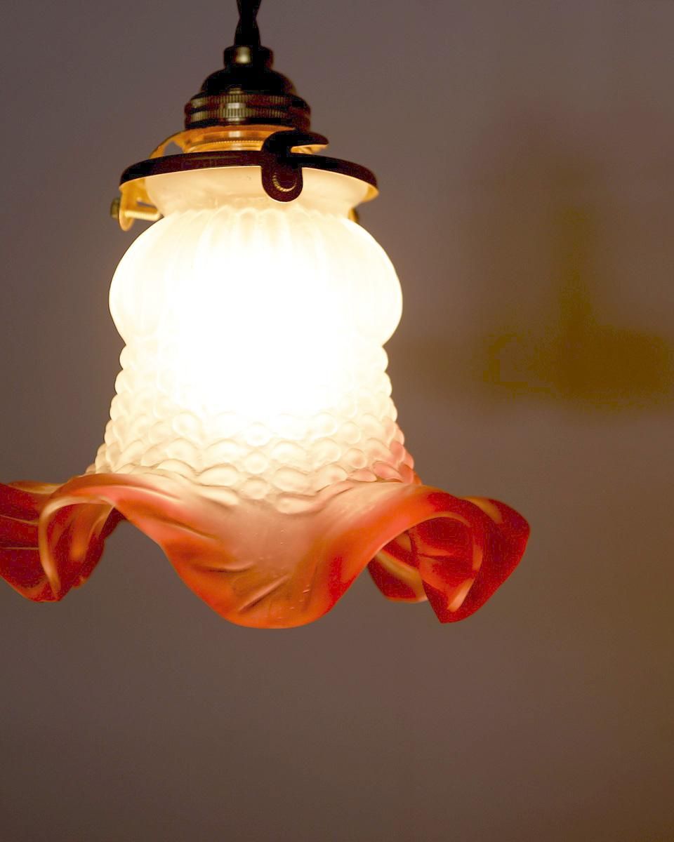 フロストガラスシェードのペンダントランプです。