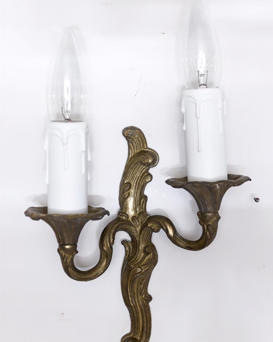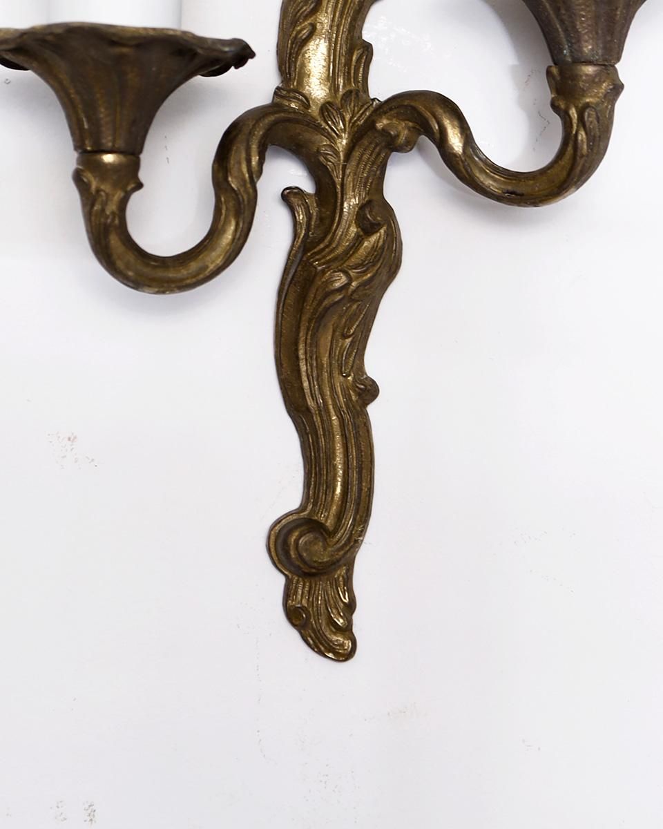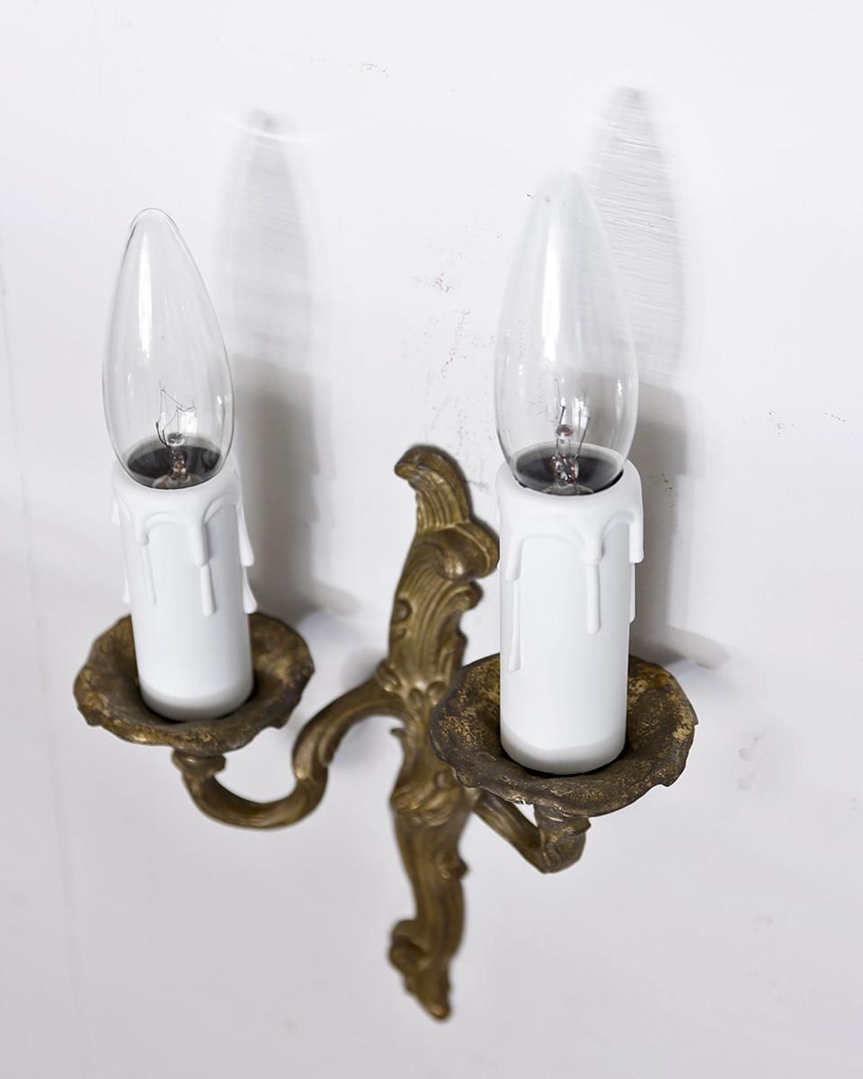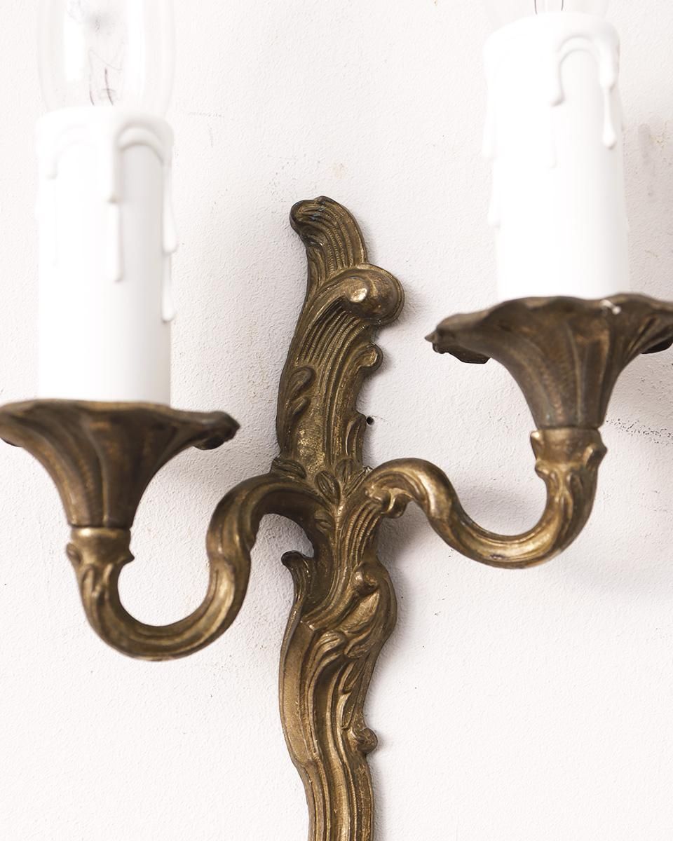繊細な彫刻が美しい真鍮製のウォールランプです。