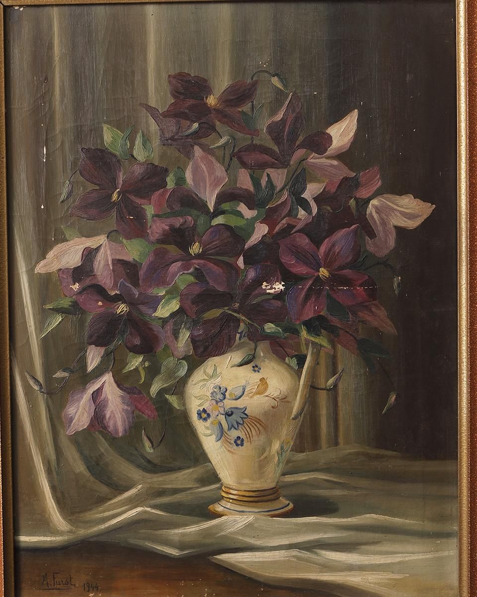 花瓶いっぱいに生けられており、落ち着いた色味に