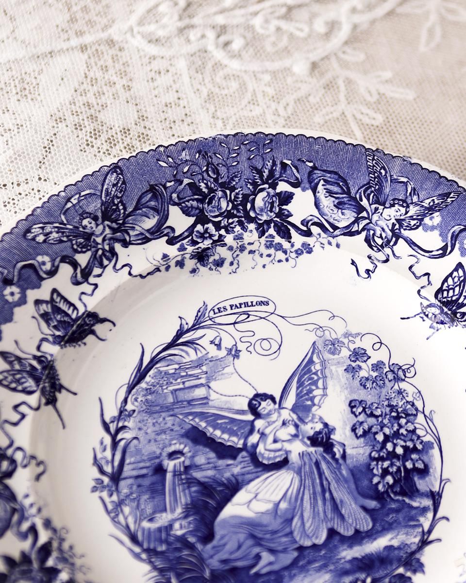 プレートのリム部分にまで丁寧に描かれた藍色の美しい