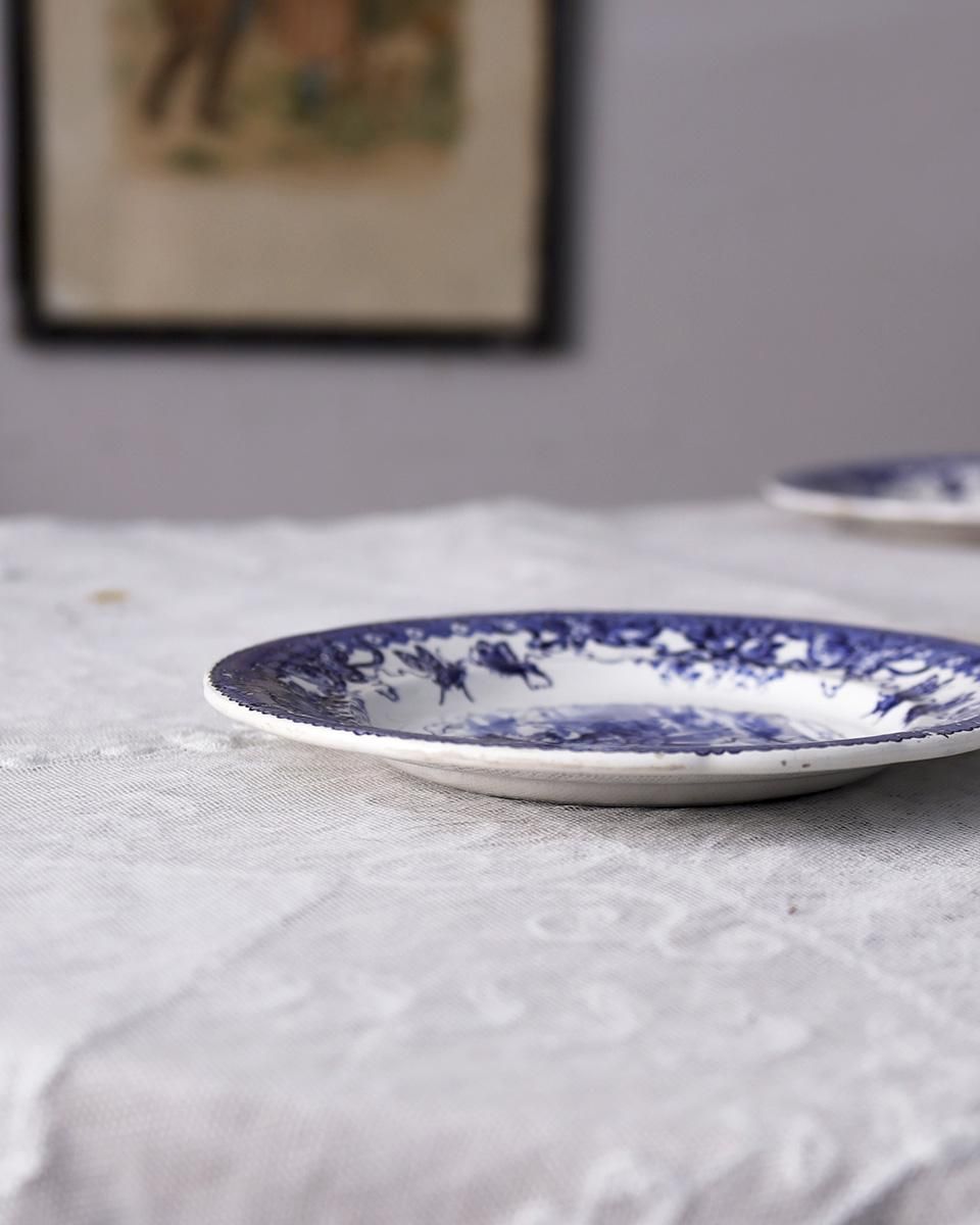 プレートのリム部分にまで丁寧に描かれた藍色の美しい