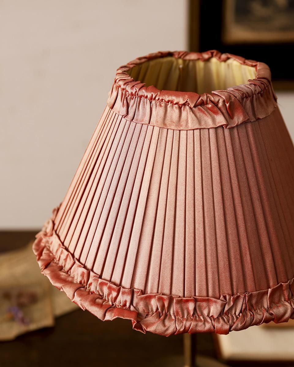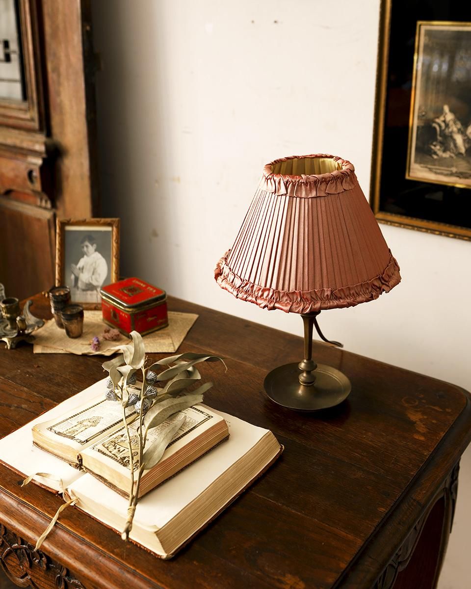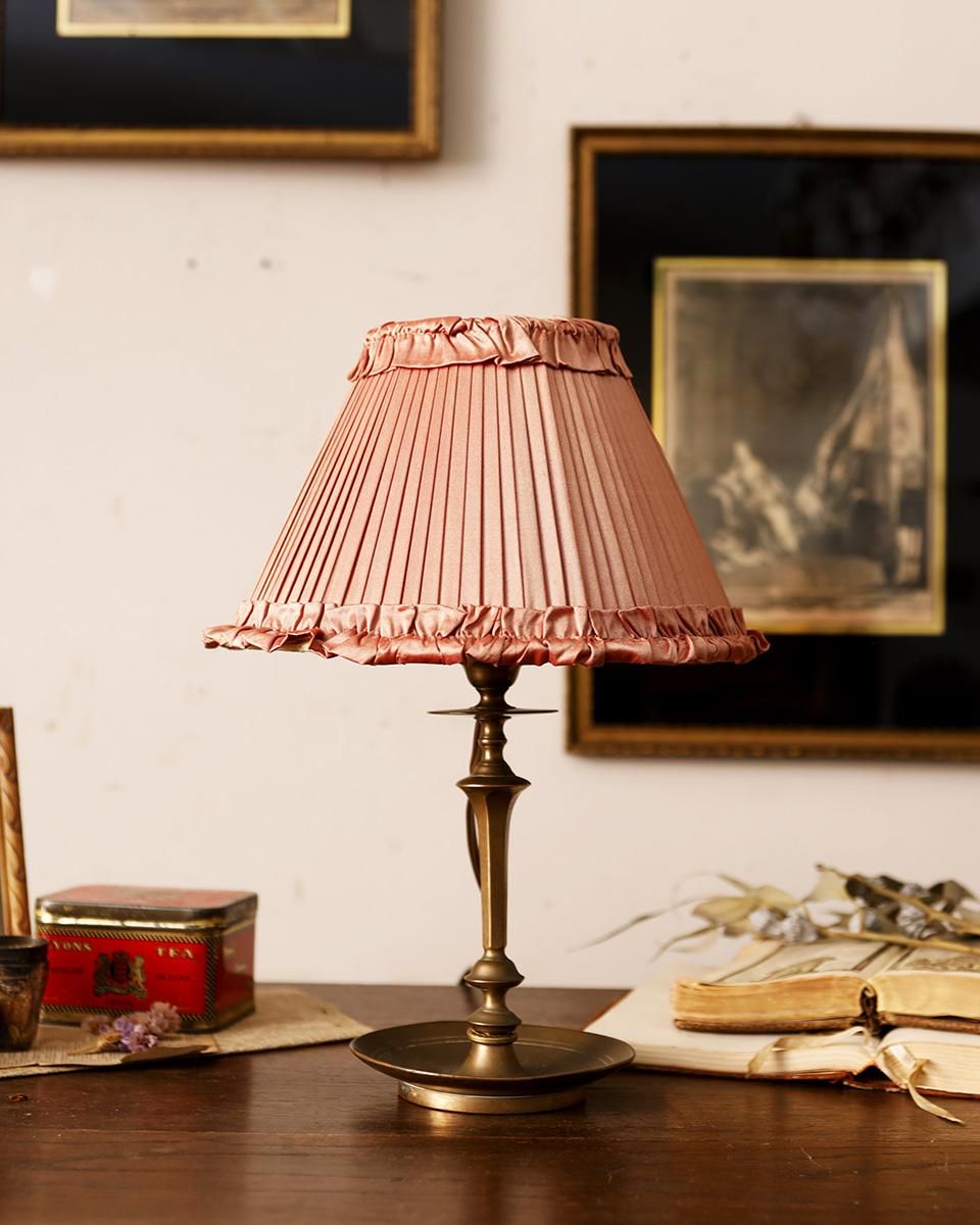 ピンクのフリルシェードが目を惹くテーブルランプです。