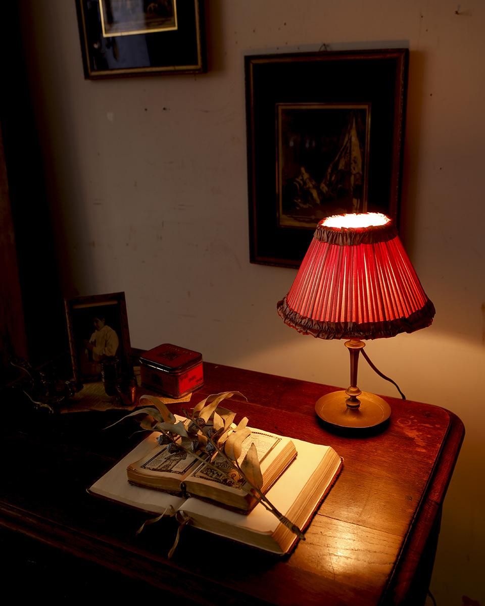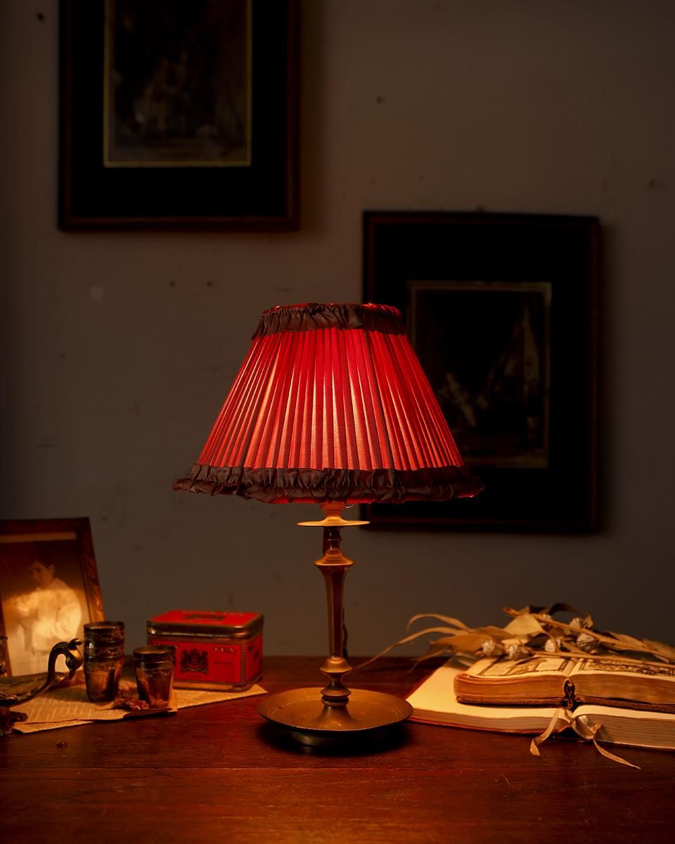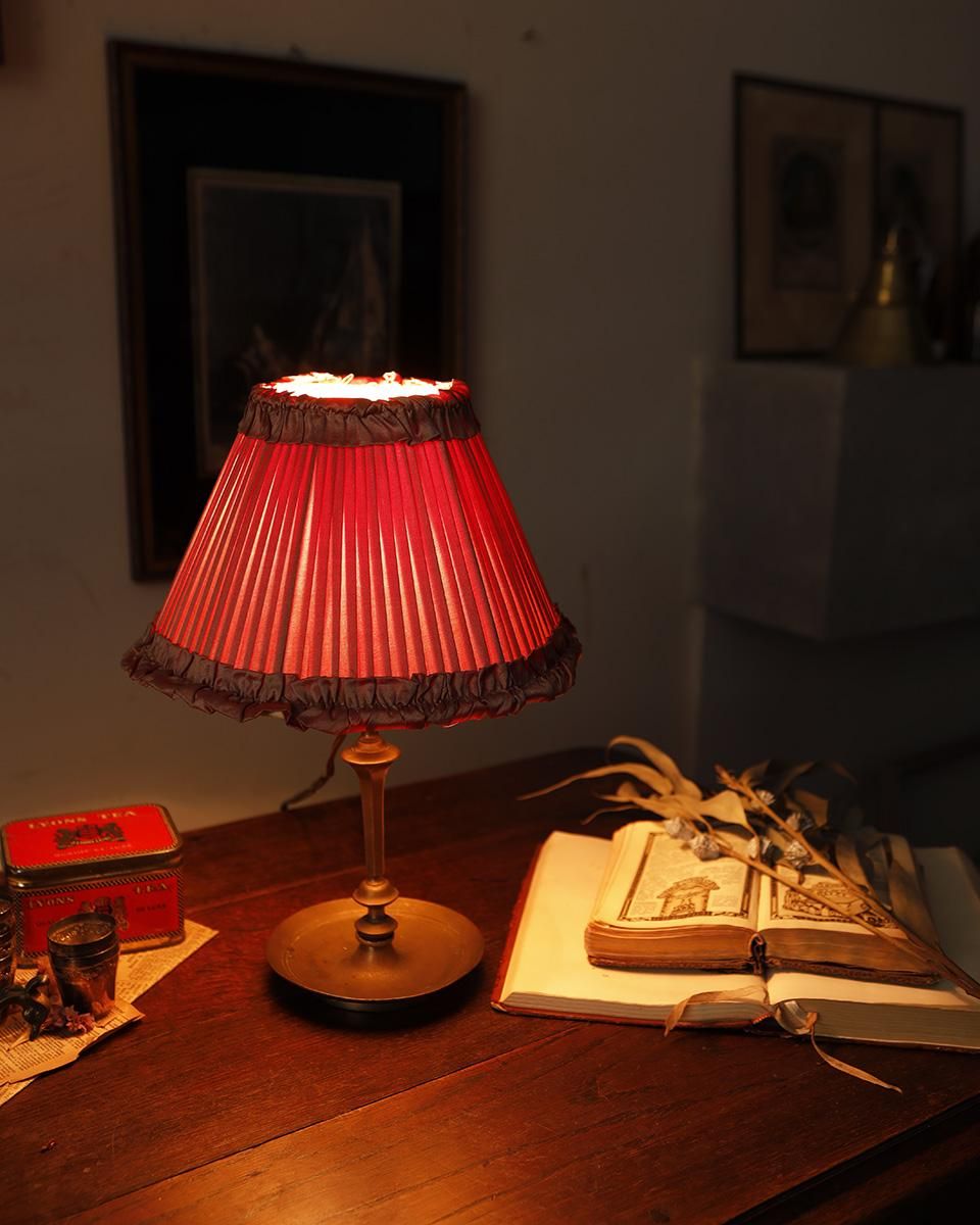 ピンクのフリルシェードが目を惹くテーブルランプです。
