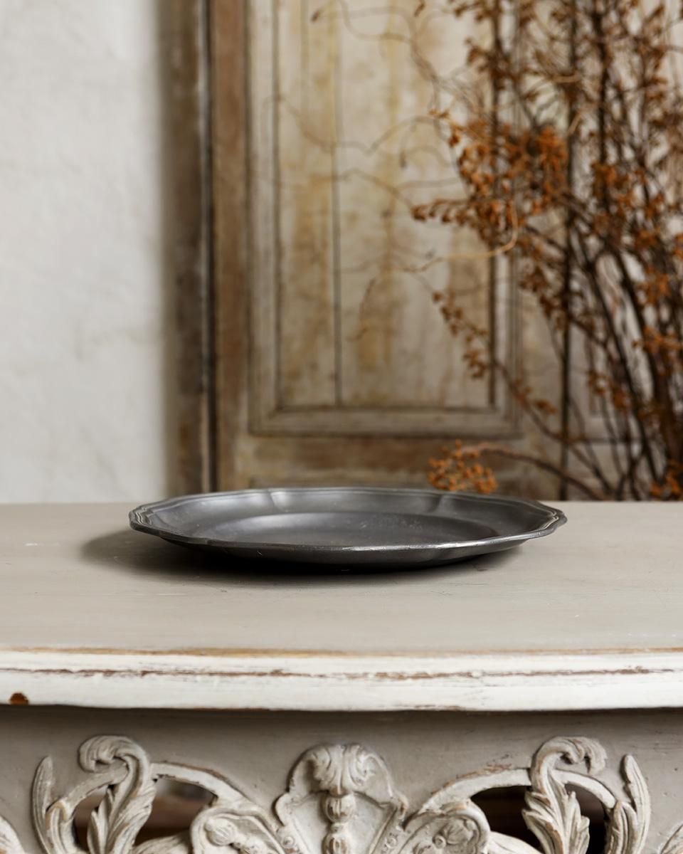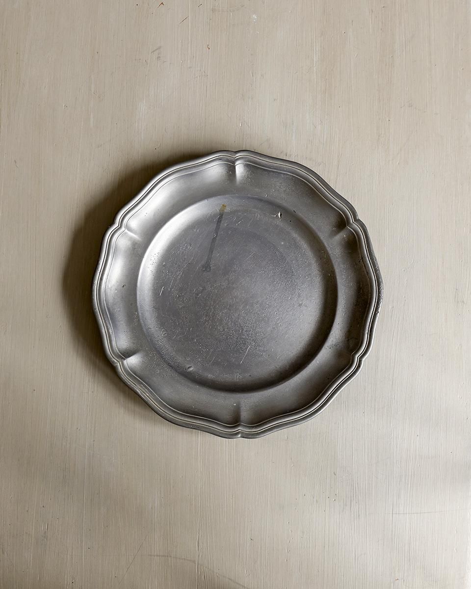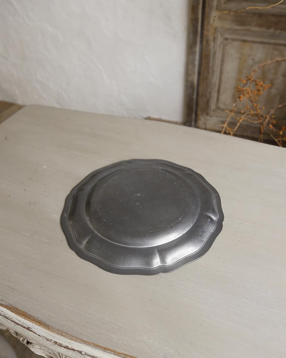 フランス19世紀のピュータ― (エタン)製の花リムプレートです。