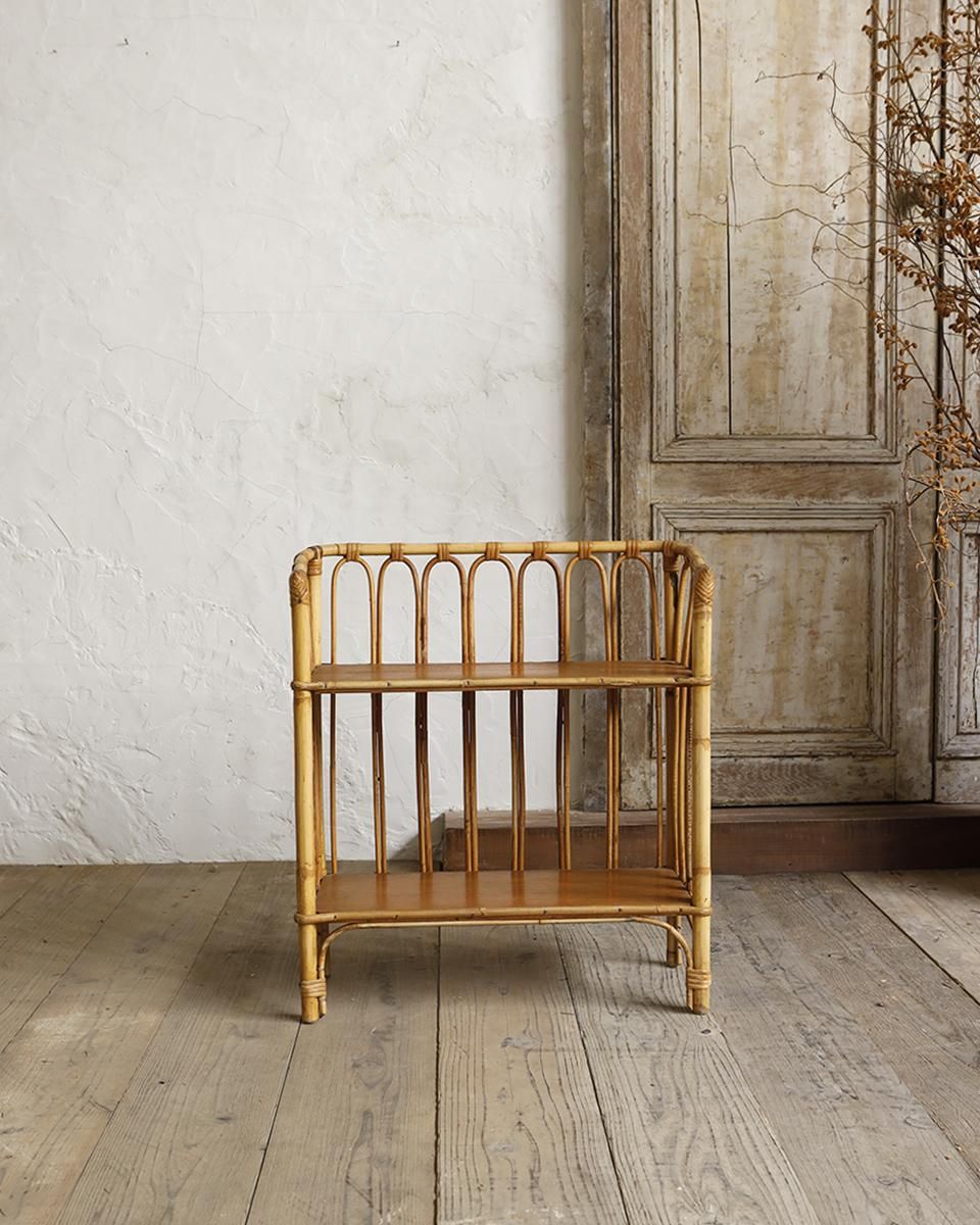 フランスより届いた軽やかな雰囲気のラタンシェルフ。