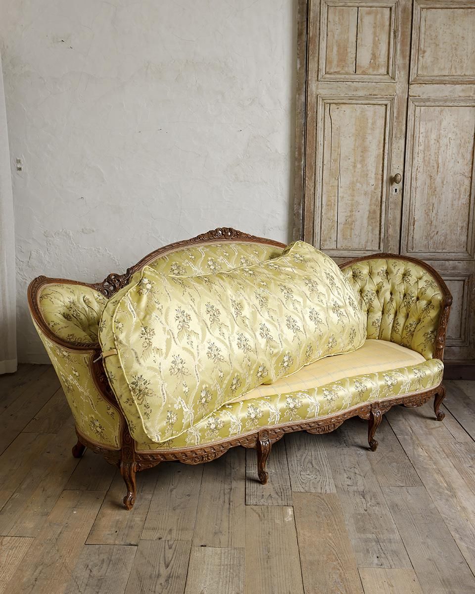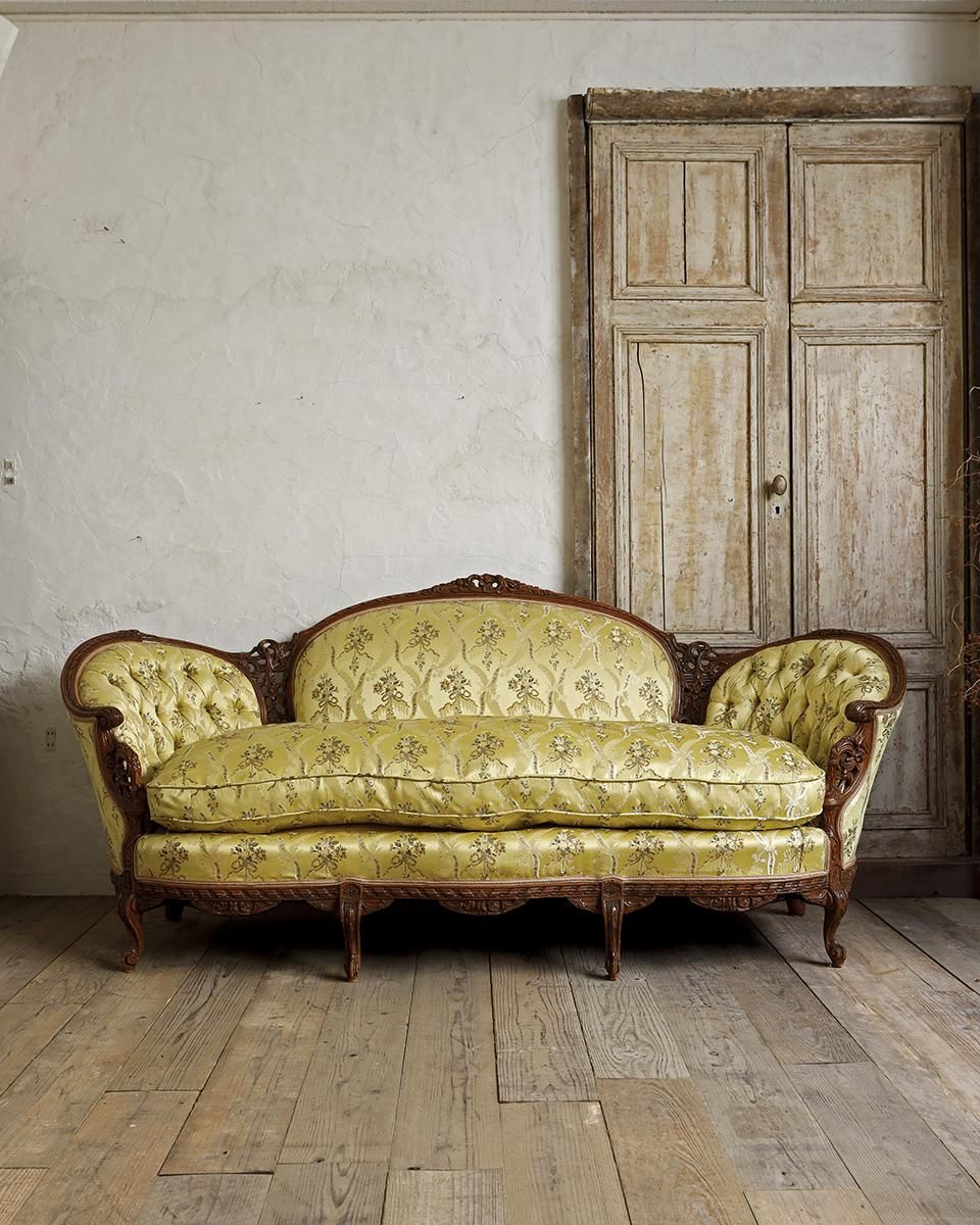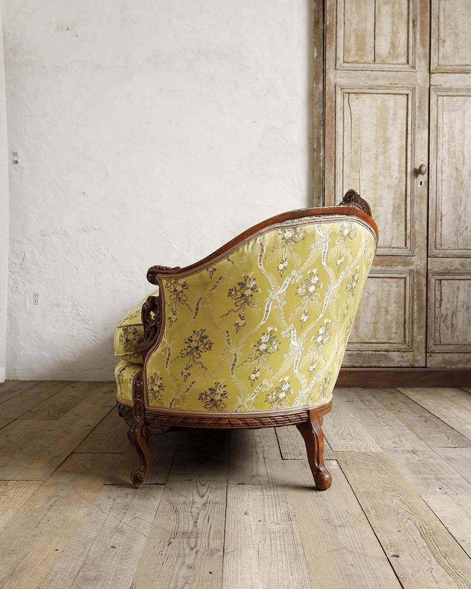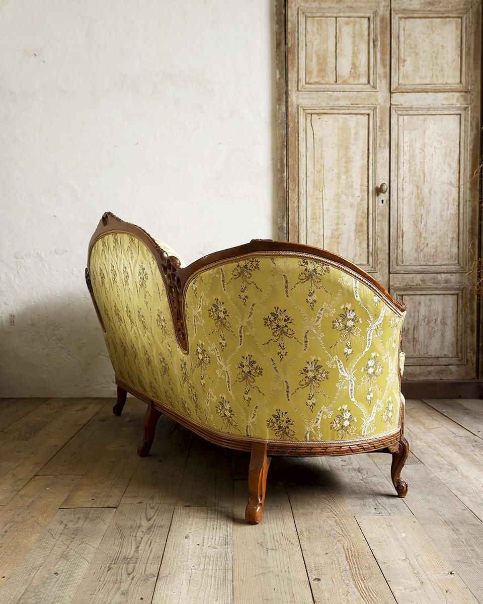ヴィンテージの3人掛けサイズのファブリックソファです。