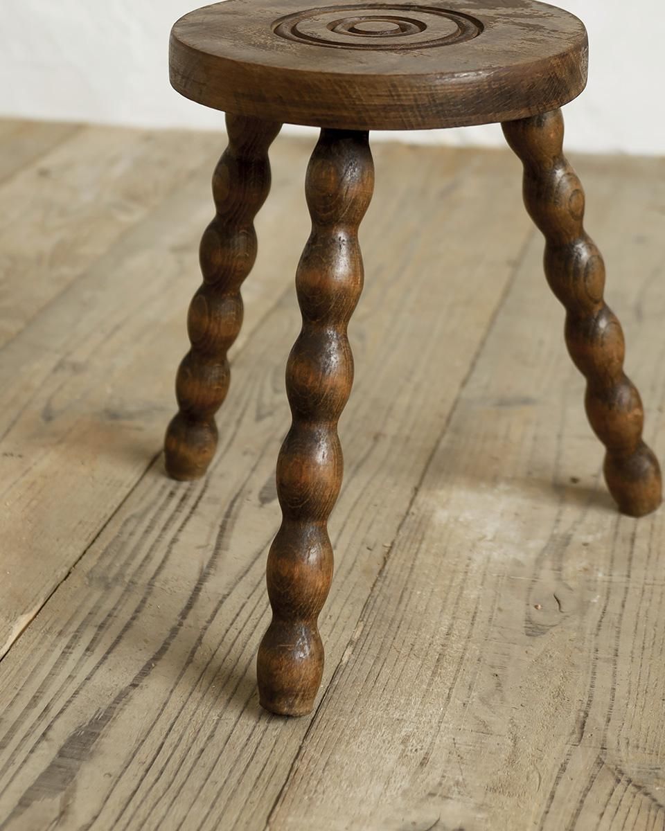 丸型の座面に台形型に広がる3本のボビンレッグが