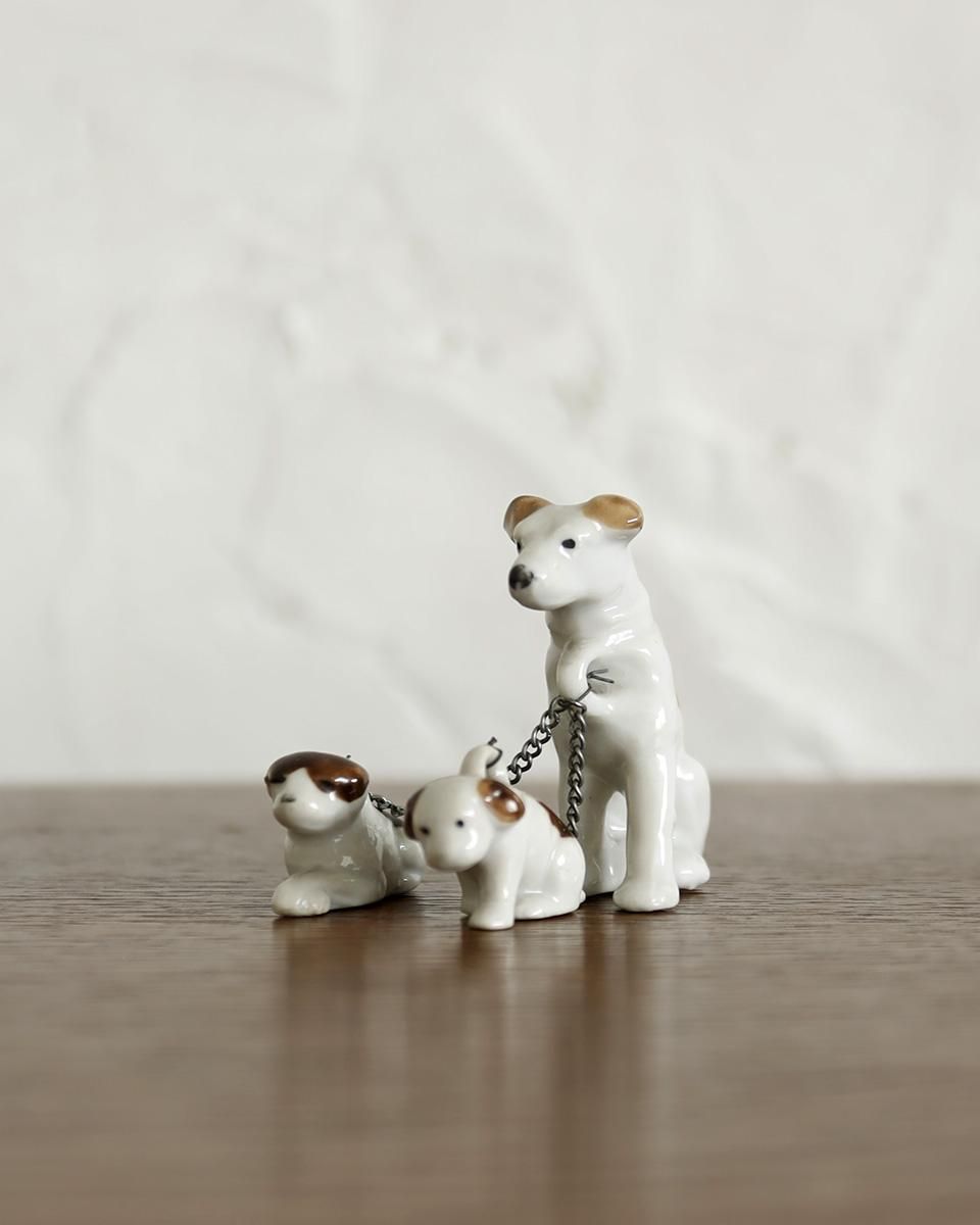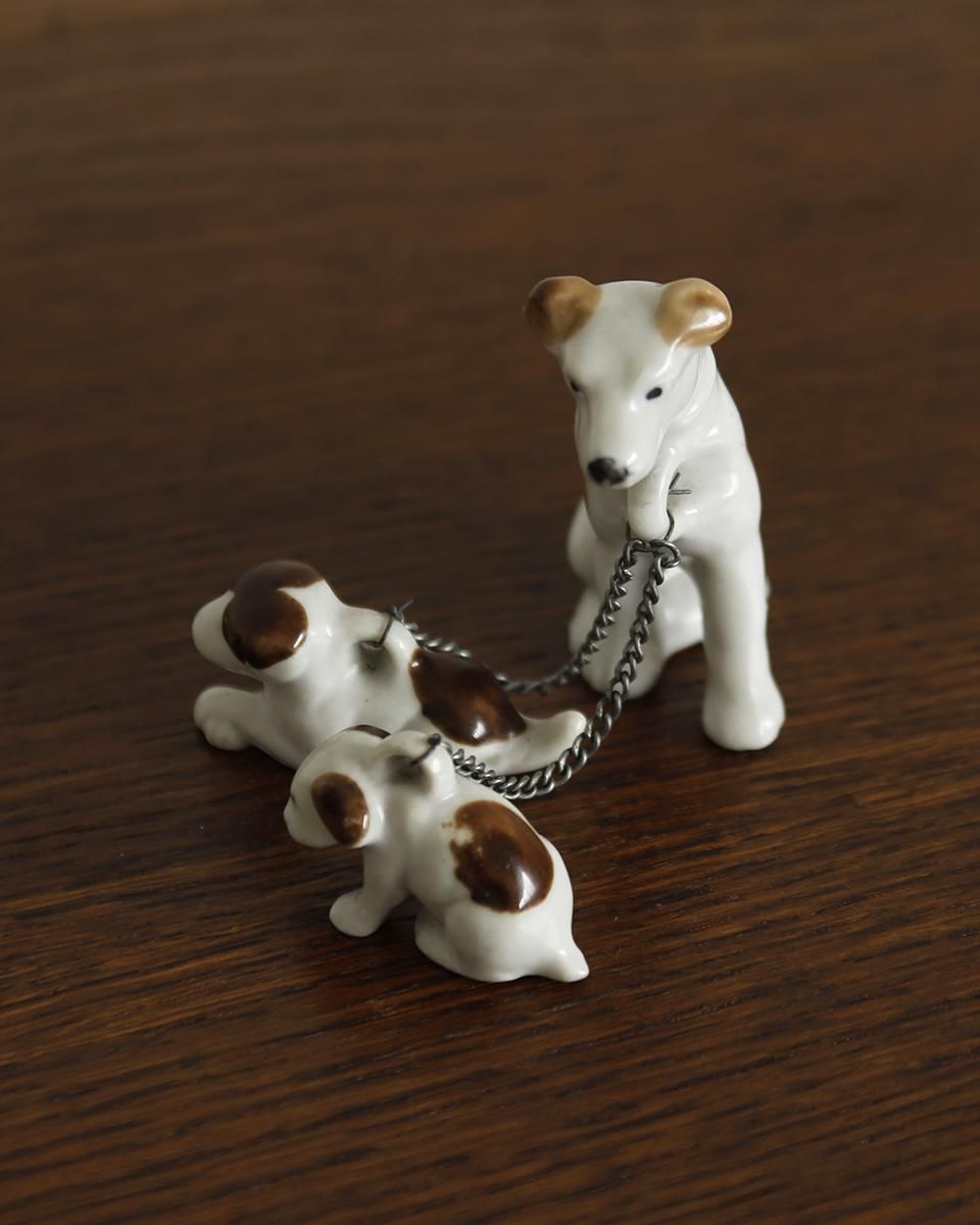 From : France 3匹の犬の親子がセットになったヴィンテージの ミニサイズの陶器製のオブジェです。 小さいサイズに、ちょこんと座っている姿に 何とも言えない可愛い仔犬の表情が 愛らしく見ているだけで癒されるアイテムです。 商品はアンティーク品のため、お写真では伝わり 難い色褪せや小傷などがございます。 追加のお写真をご希望の方はお気軽にお問合せくださいませ。