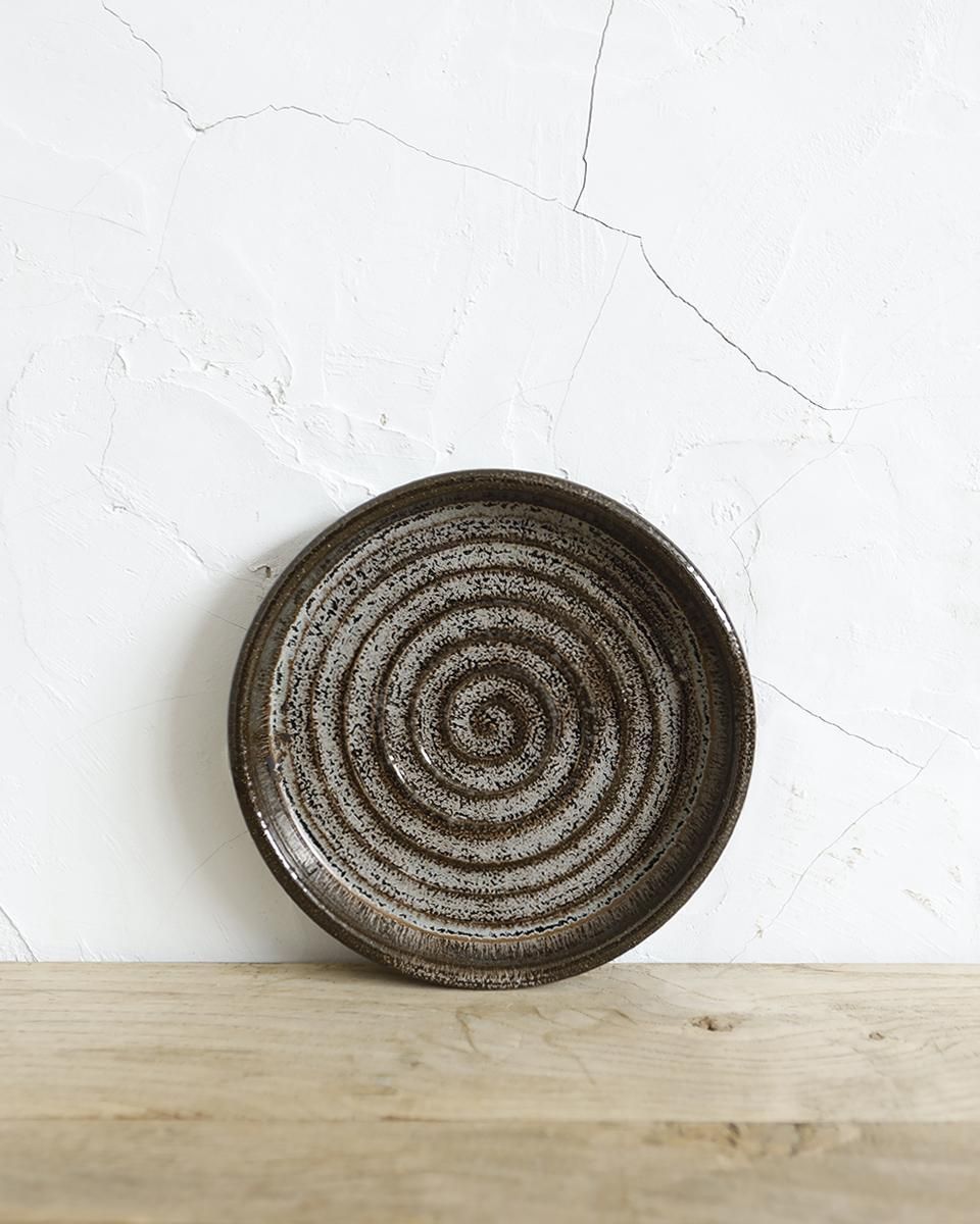 落ち着いた陶器の色味に、表面に施された渦巻き模様が