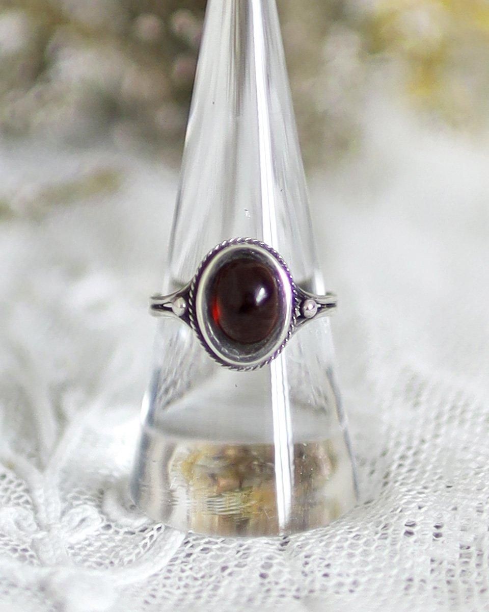 楕円形のストーンは、まるでガーネットのような