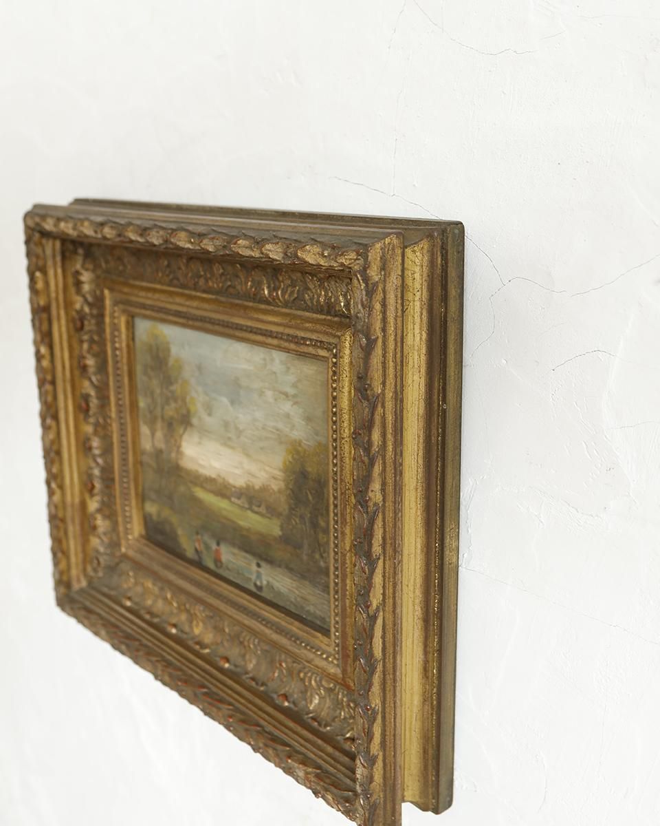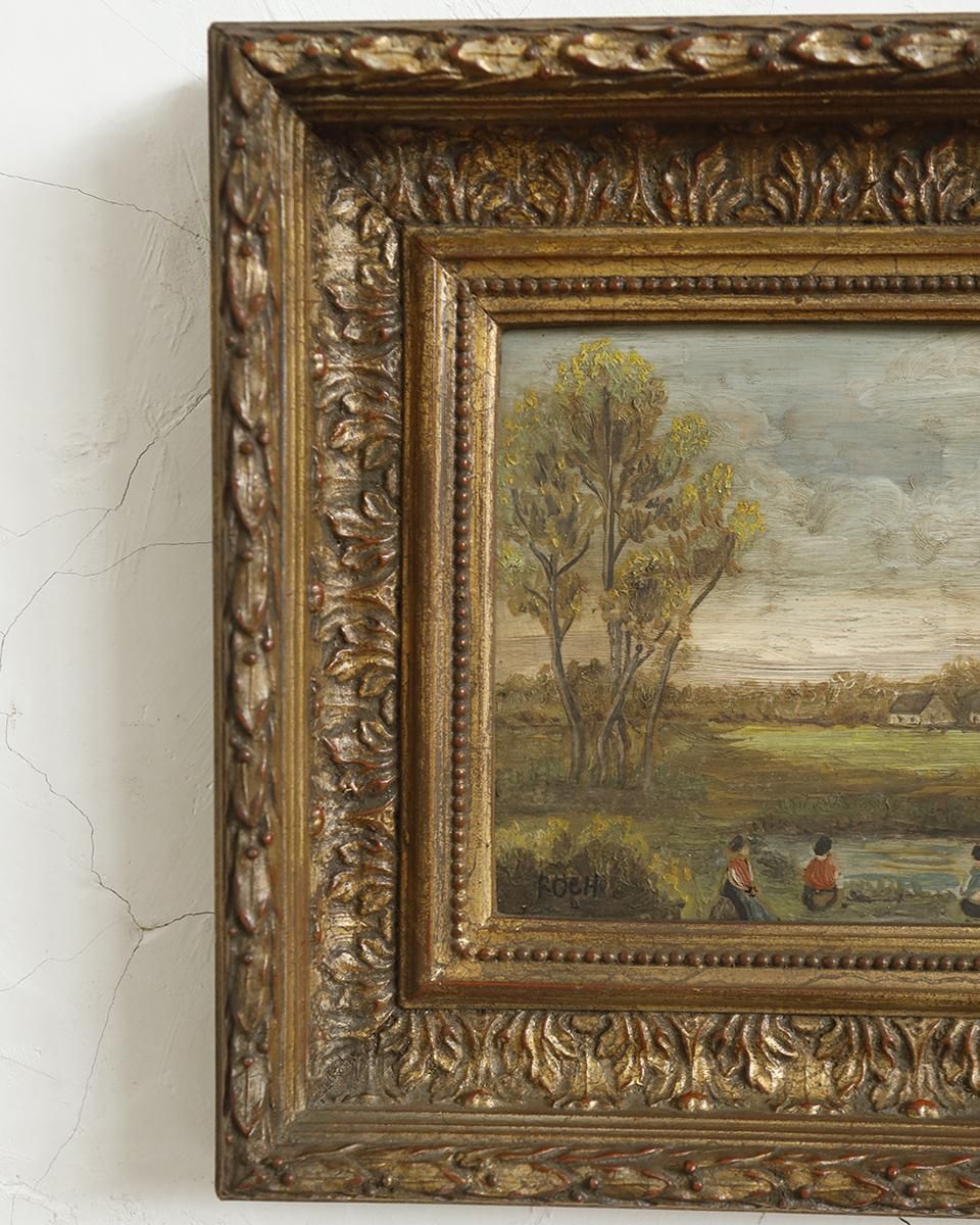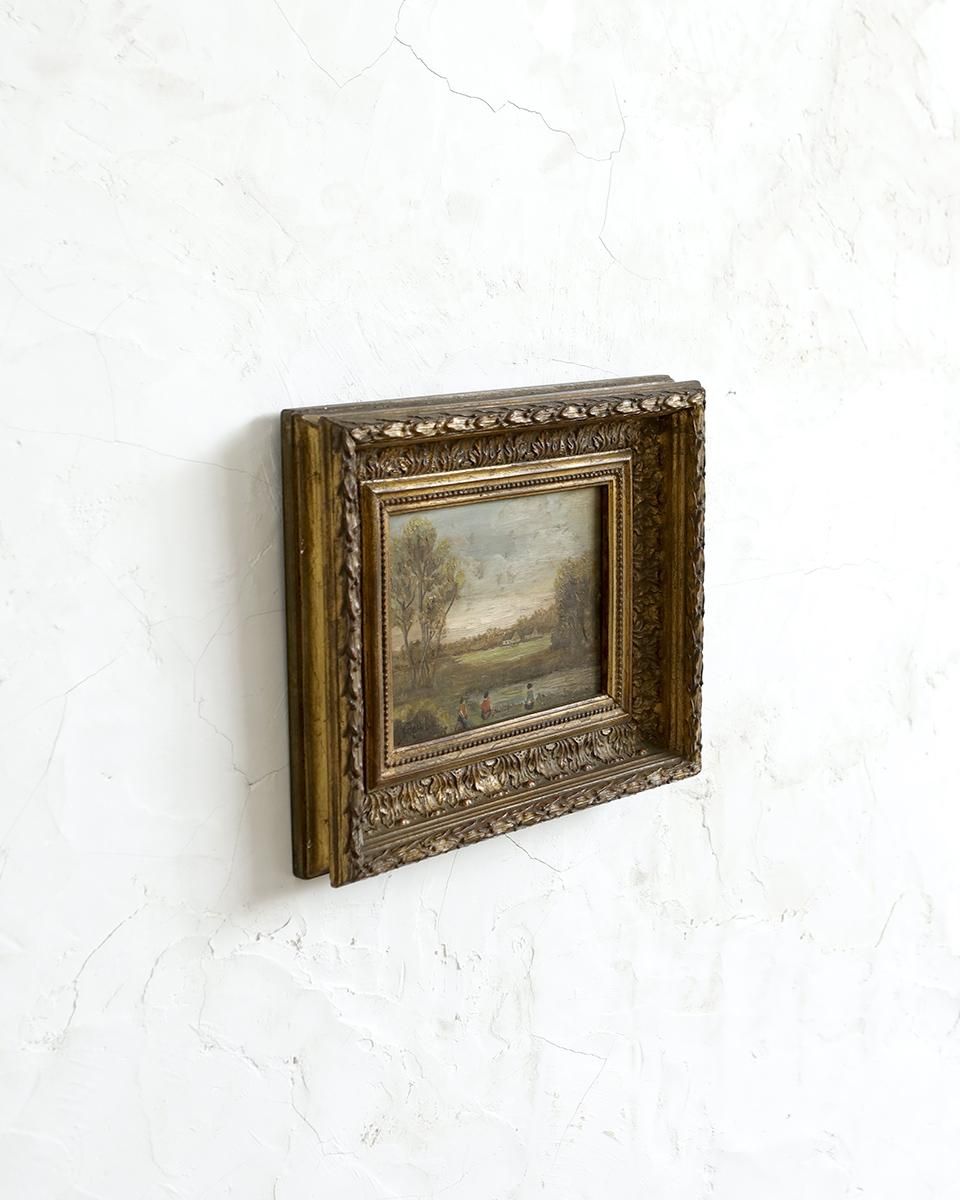 油彩画がはめ込まれた作品です。