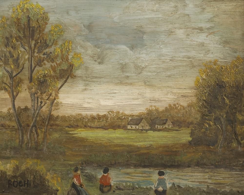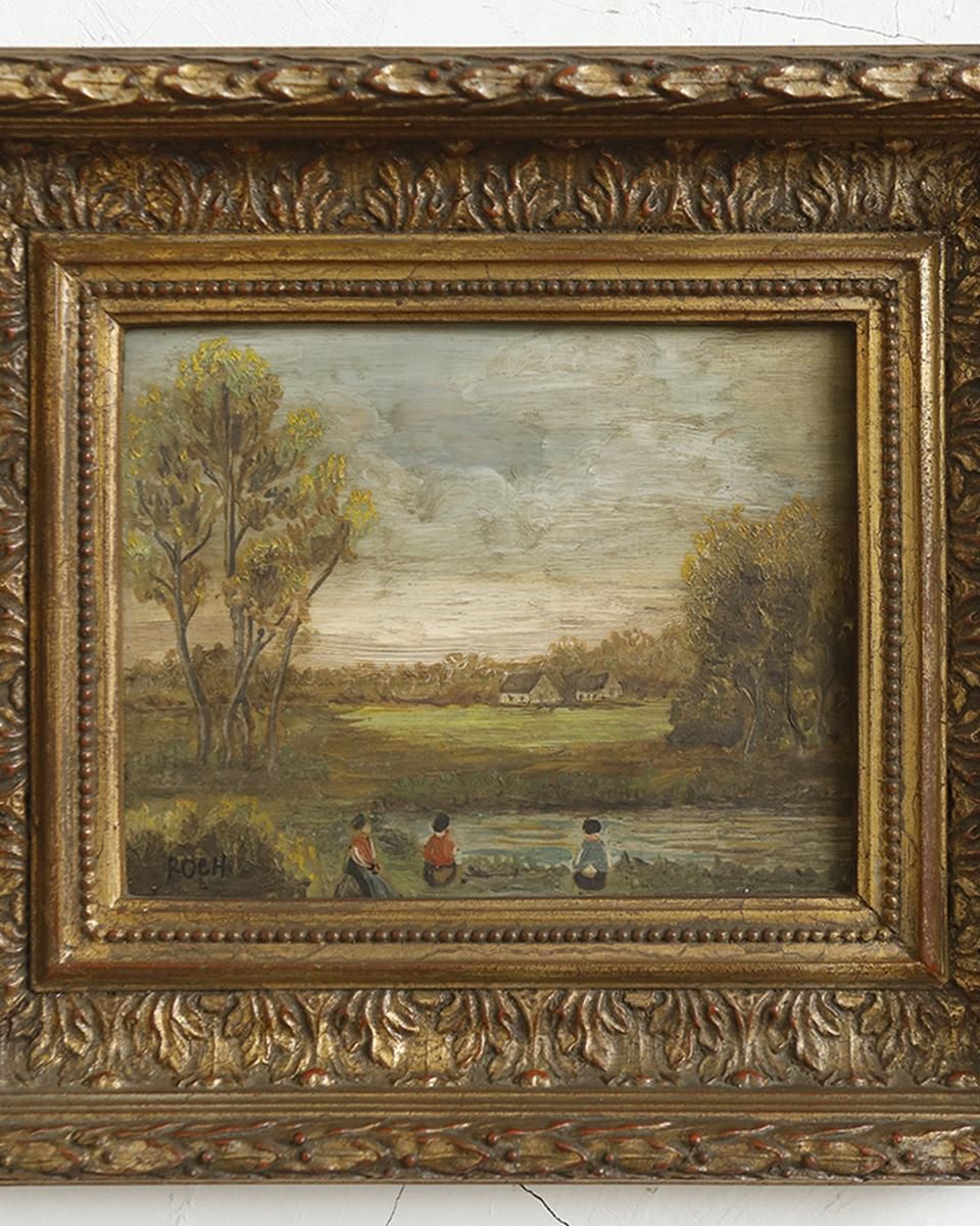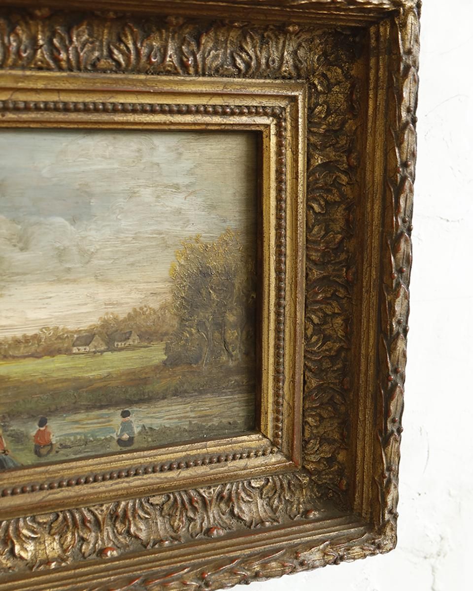 油彩画がはめ込まれた作品です。