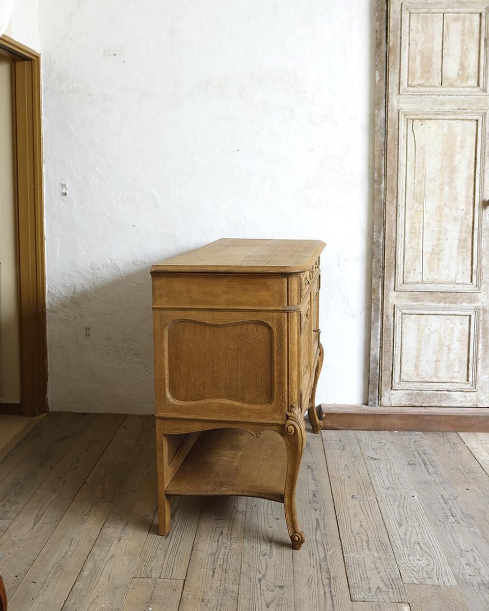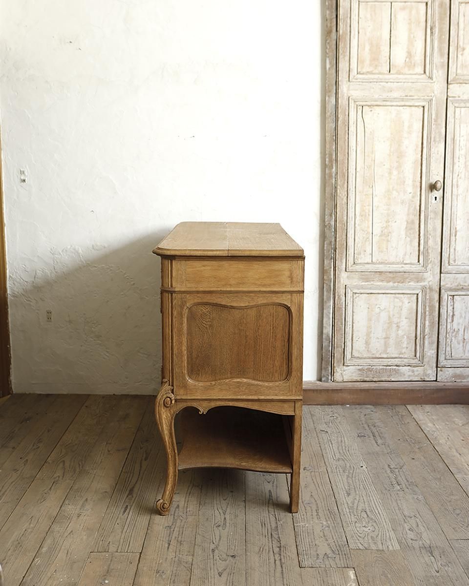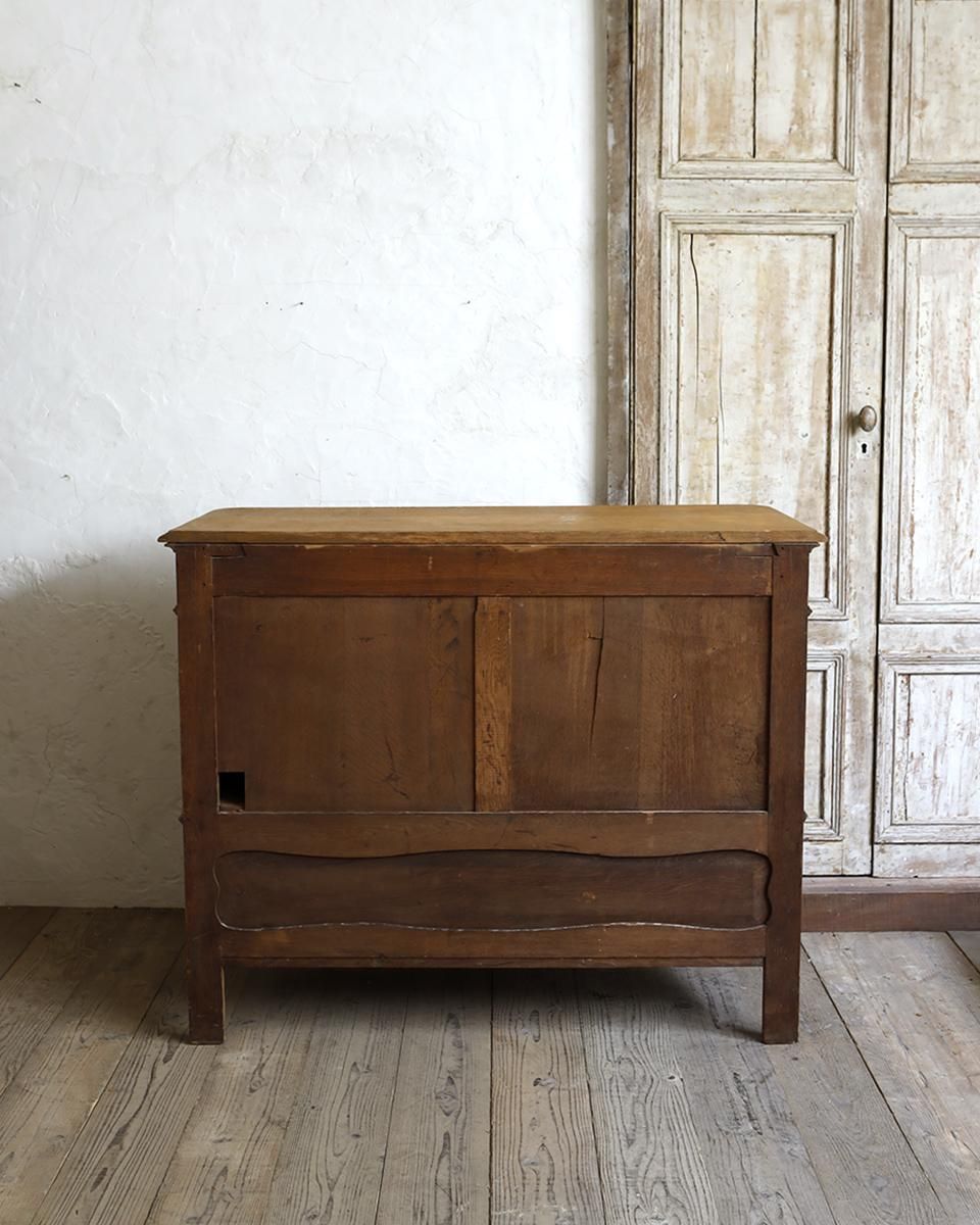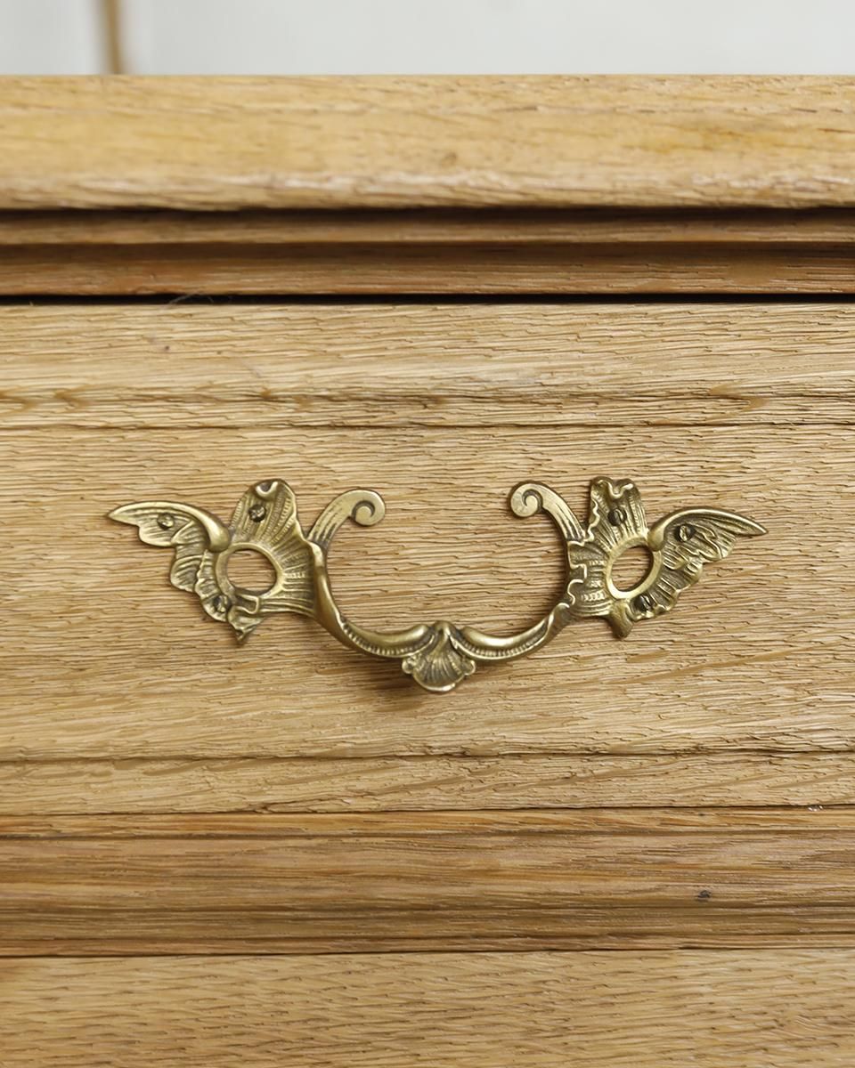 抽斗や扉に配われたルイ15世様式の金物(ロカイユ装飾)