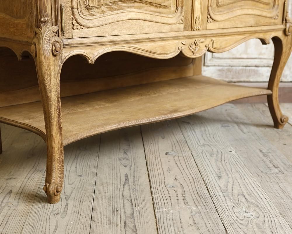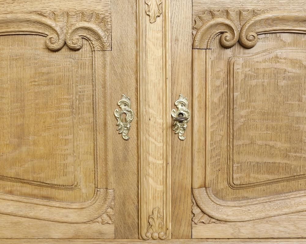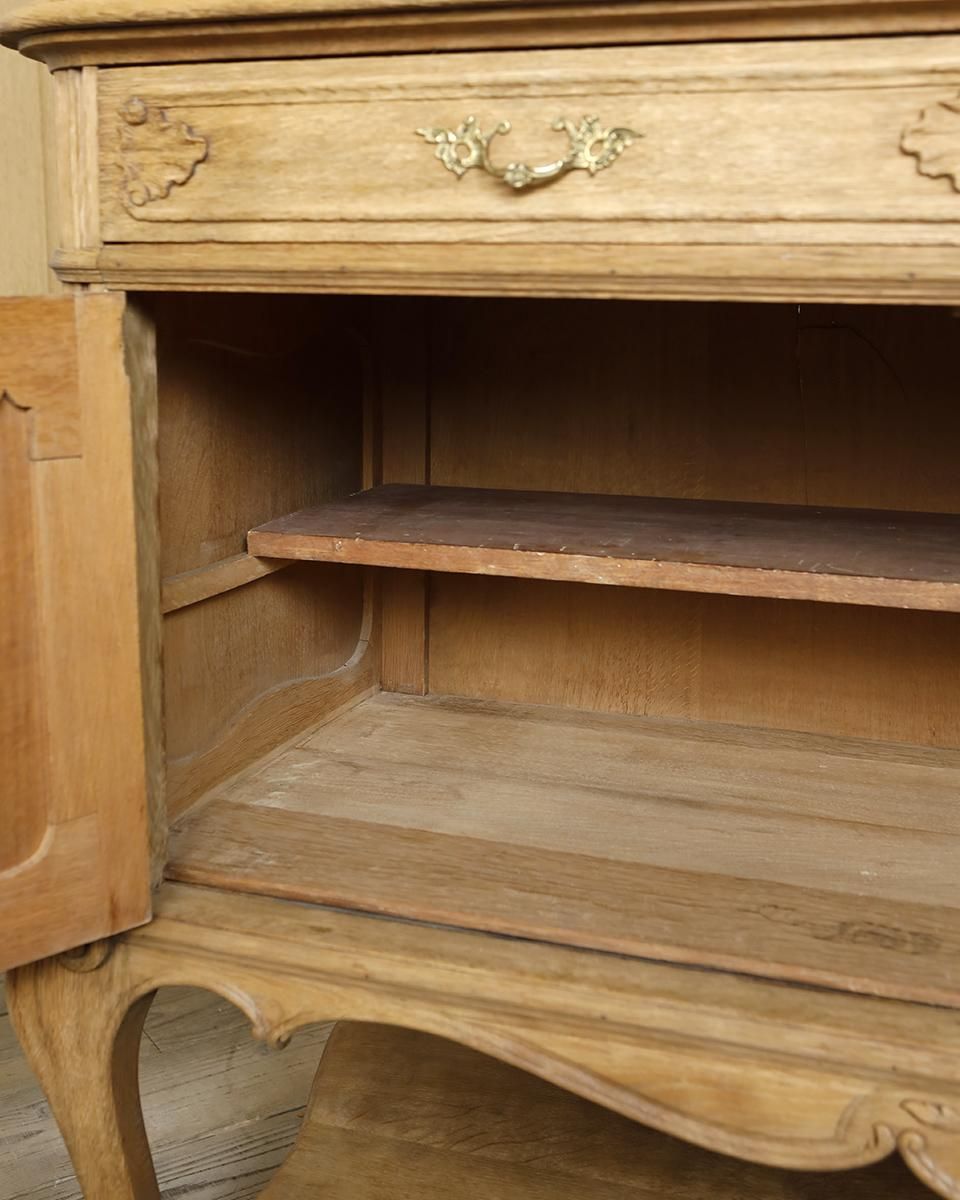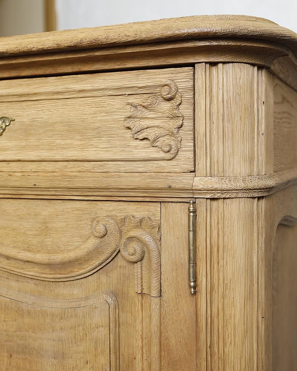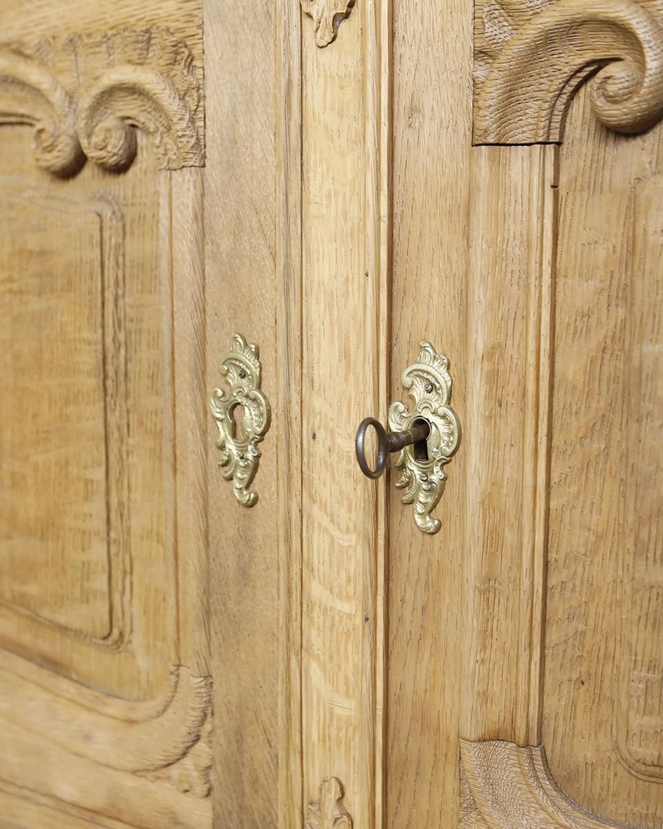 抽斗や扉に配われたルイ15世様式の金物(ロカイユ装飾)
