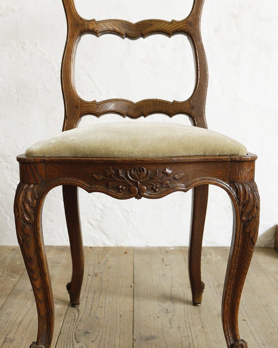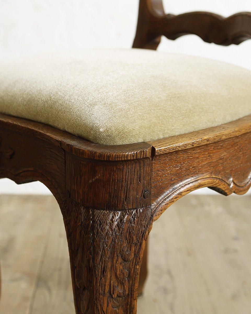 美しい彫刻が施されており、背もたれ部分のデザインも