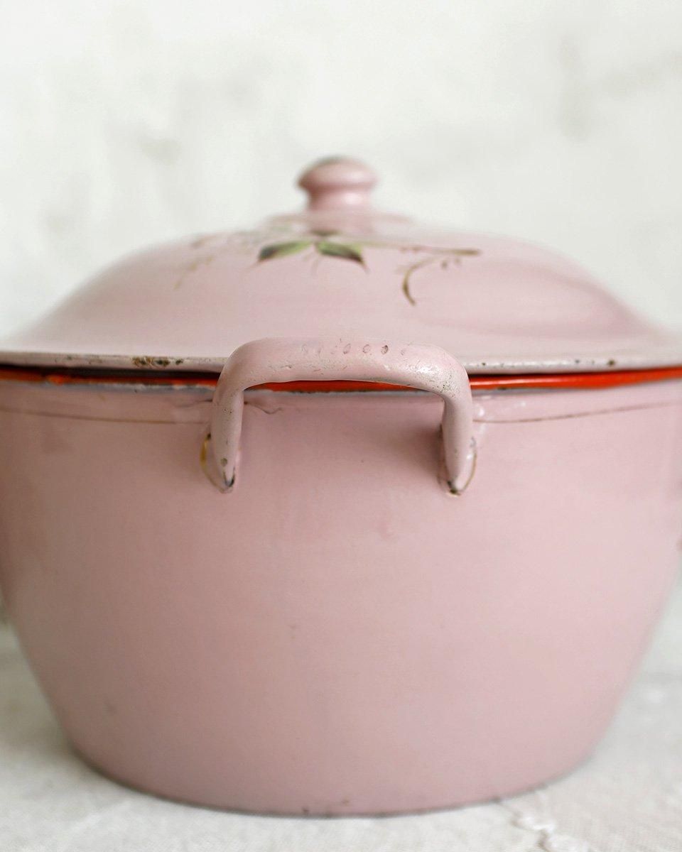 ホーロー製のキャセロール(エナメル製両手鍋)です。