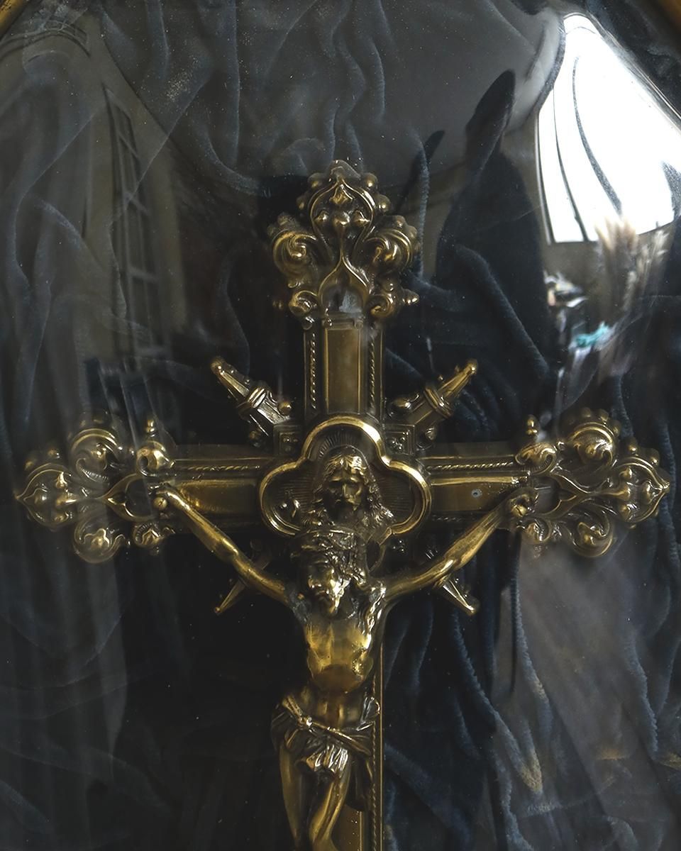 ガラスドームのフレームに、イエス・キリストが磔られた